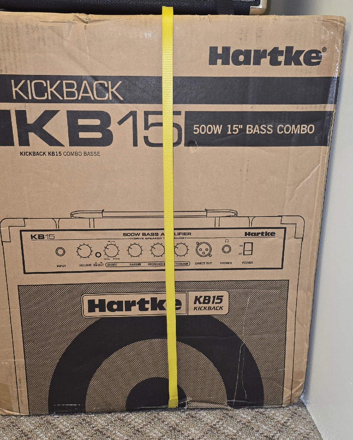10Selling a Hartke Kickback KB15 500W 15" Bass Combo. This is a Kickback KB15 combo basse. It features a 500W bass amplifier with Hydrive speaker technology. The controls include volume in/out shape, bass, midrange, treble, direct out, and phones