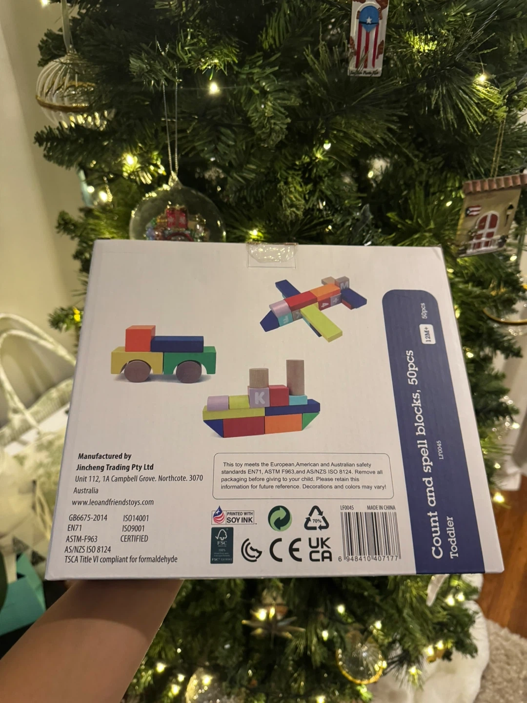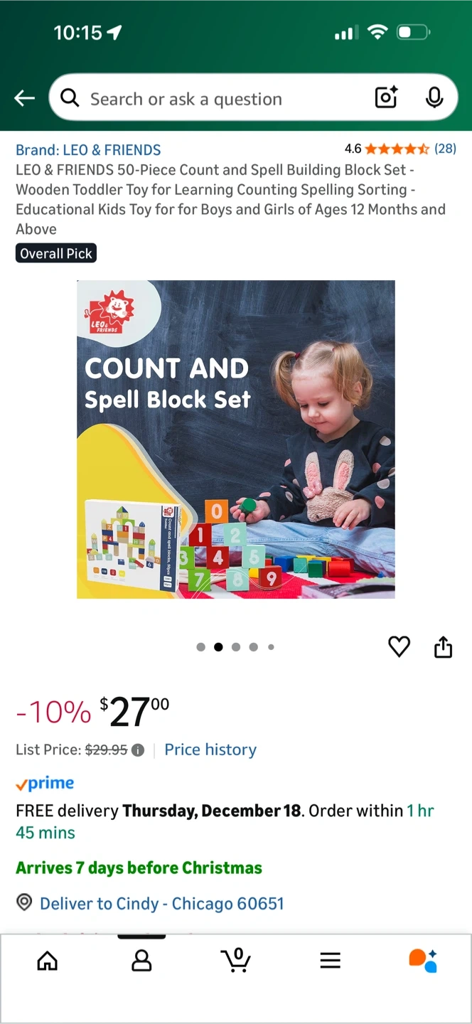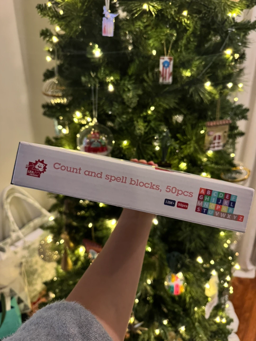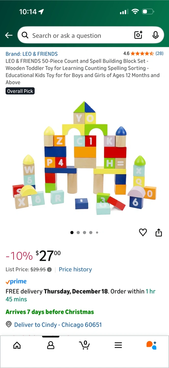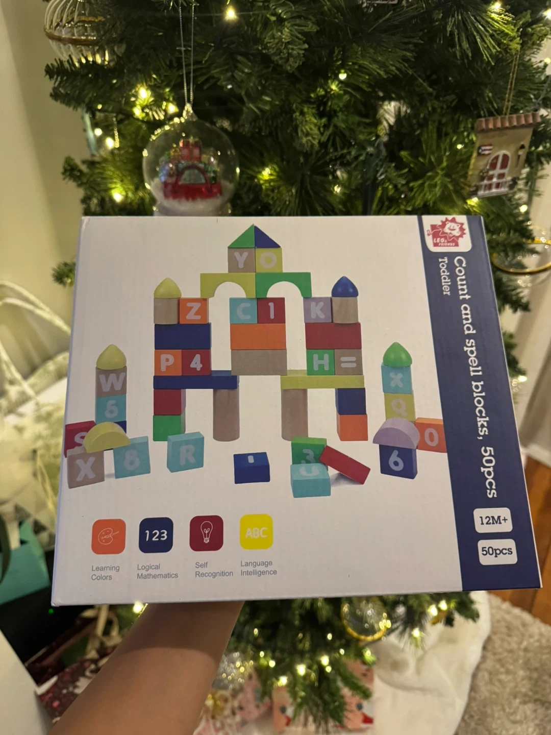 This is a LEO & FRIENDS Count and Spell Block Set with 50 pieces. It's a wooden toddler toy designed for learning counting and spelling. It's suitable for kids 12 months and above. Originally listed for $27! Return window closed. Selling for $15.