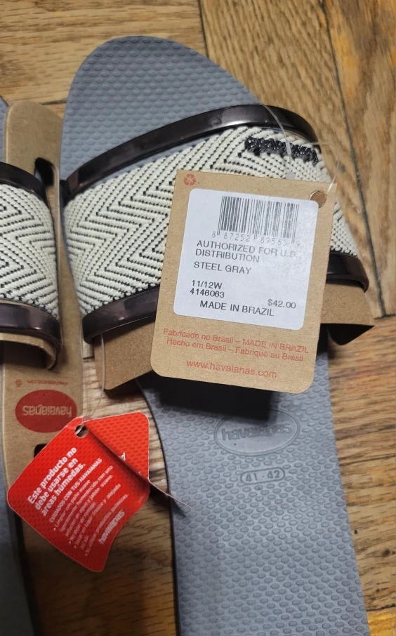 511These Havaianas slides are brand new and ready for a new home! They are a stylish steel gray color and size 11/12W. Originally bought for $42.00, these comfortable slides are perfect for everyday wear