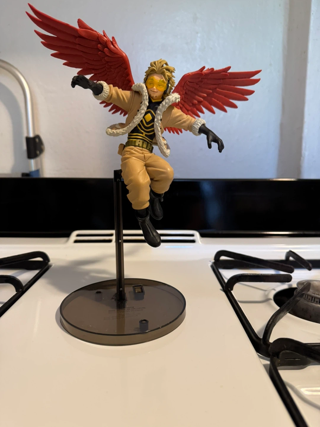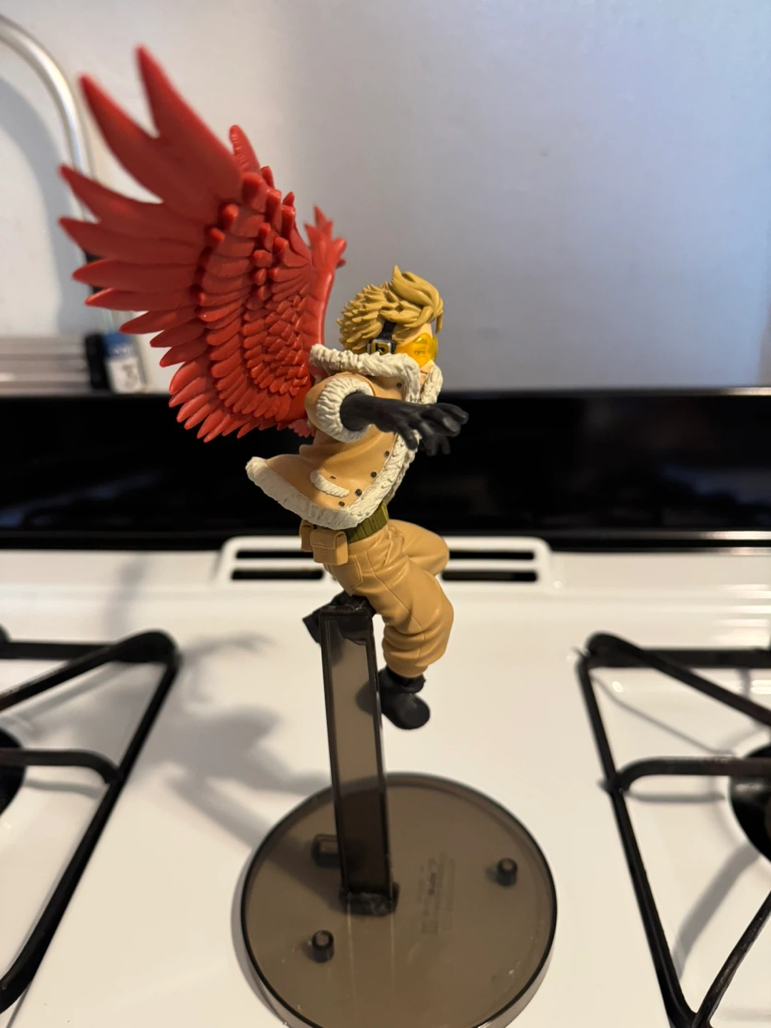 Selling a figure of Hawks from My Hero Academia. The figure is in good condition and comes with a stand. Great for any fan of the series!