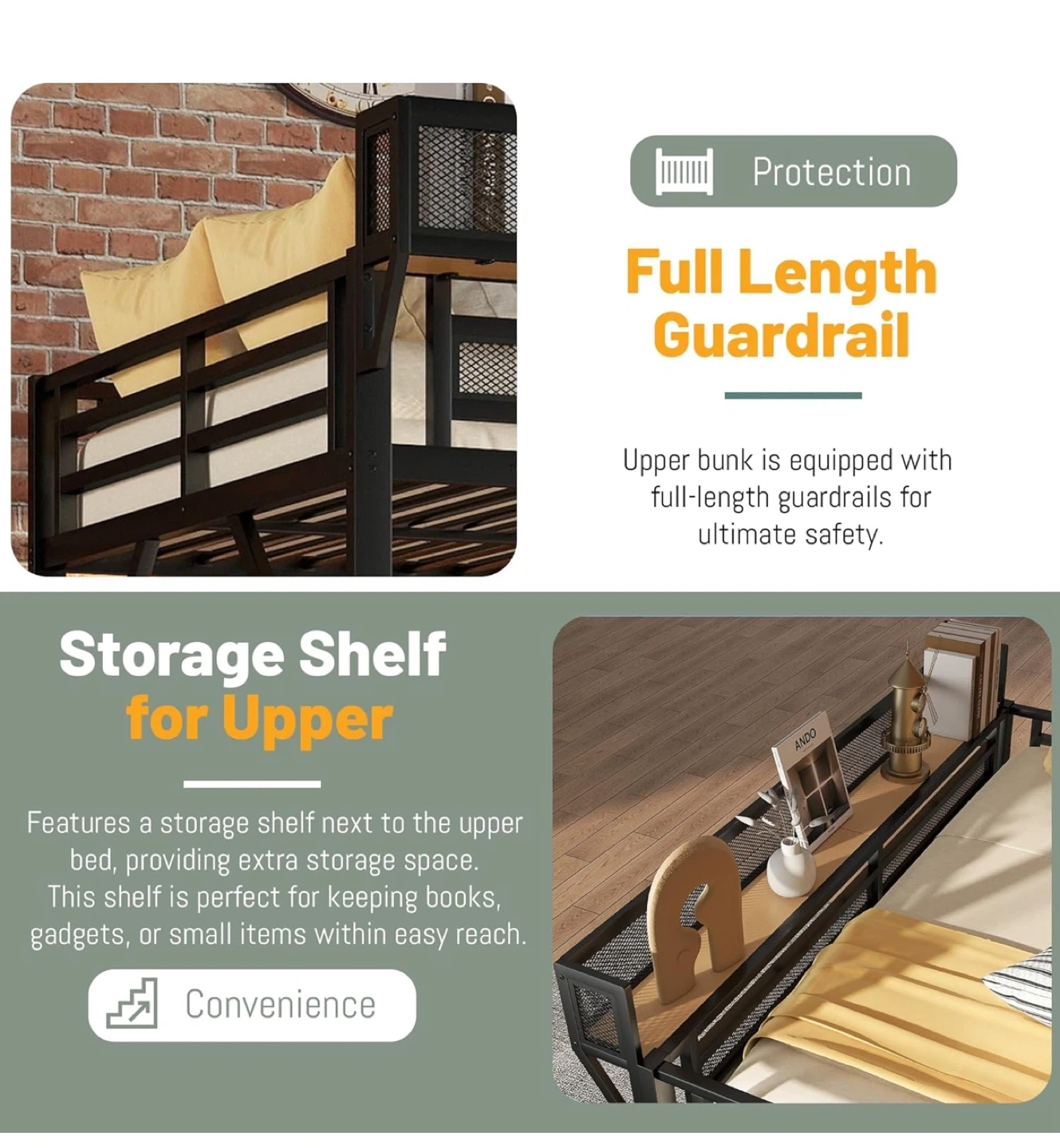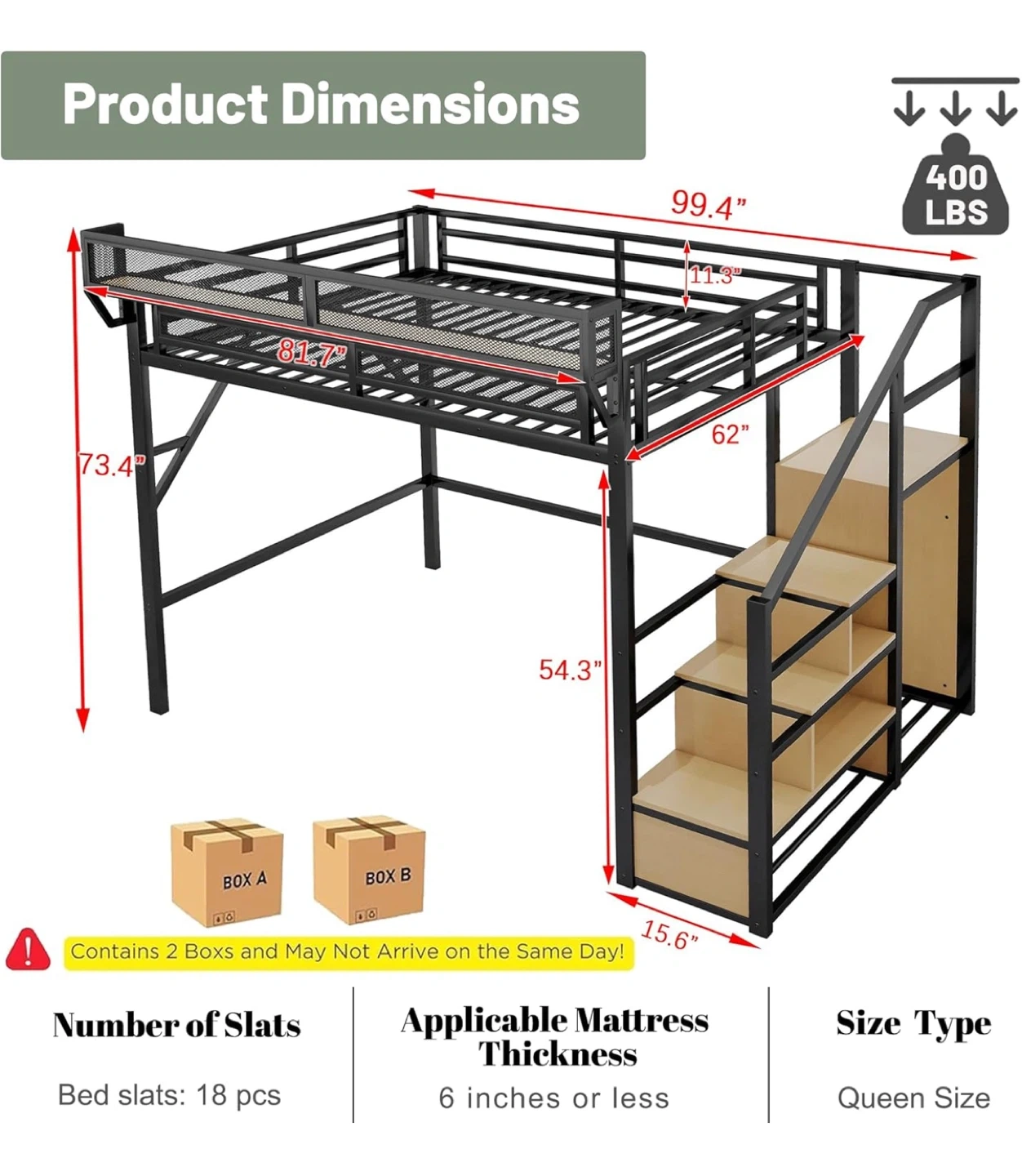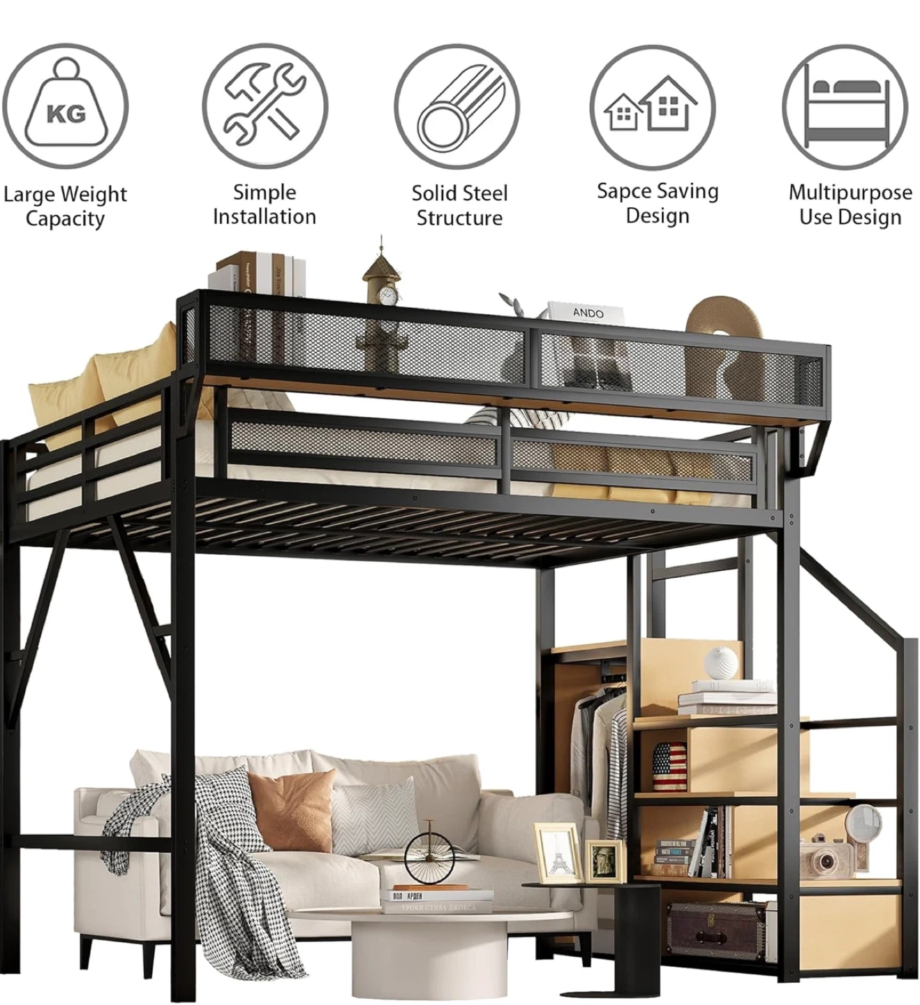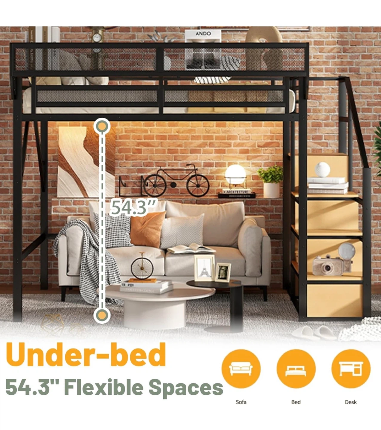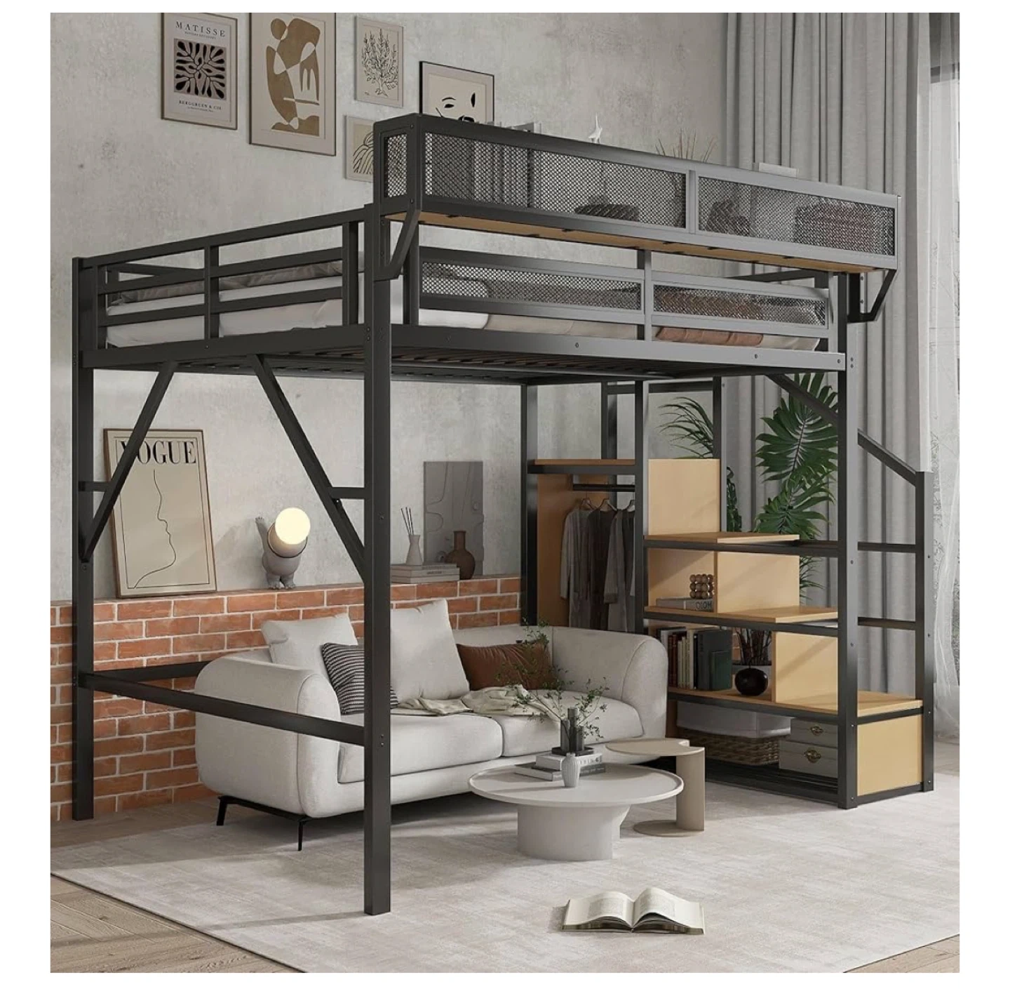 Black Metal Loft Bed Frame - Space Saving & Sturdy