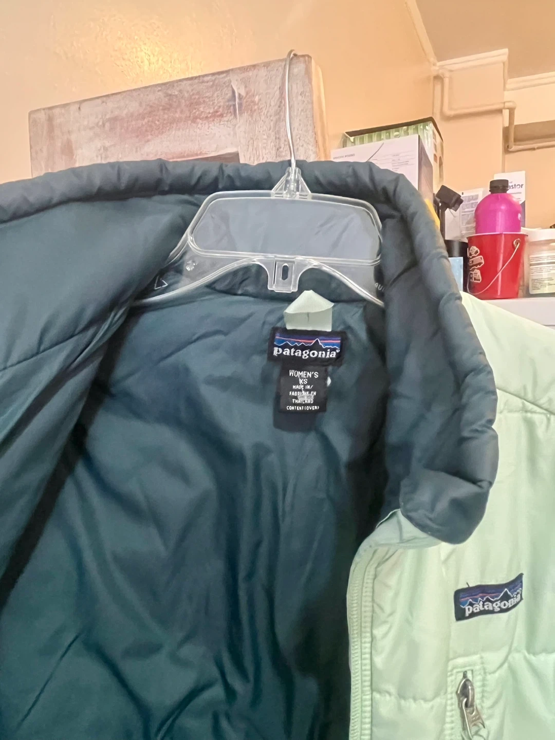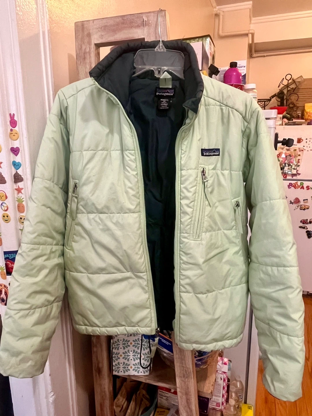 Selling a Patagonia puffer jacket in size XS men’s and medium women’s It's a mint green color on the outside with a dark green interior. Perfect for layering! Good condition offers are welcome