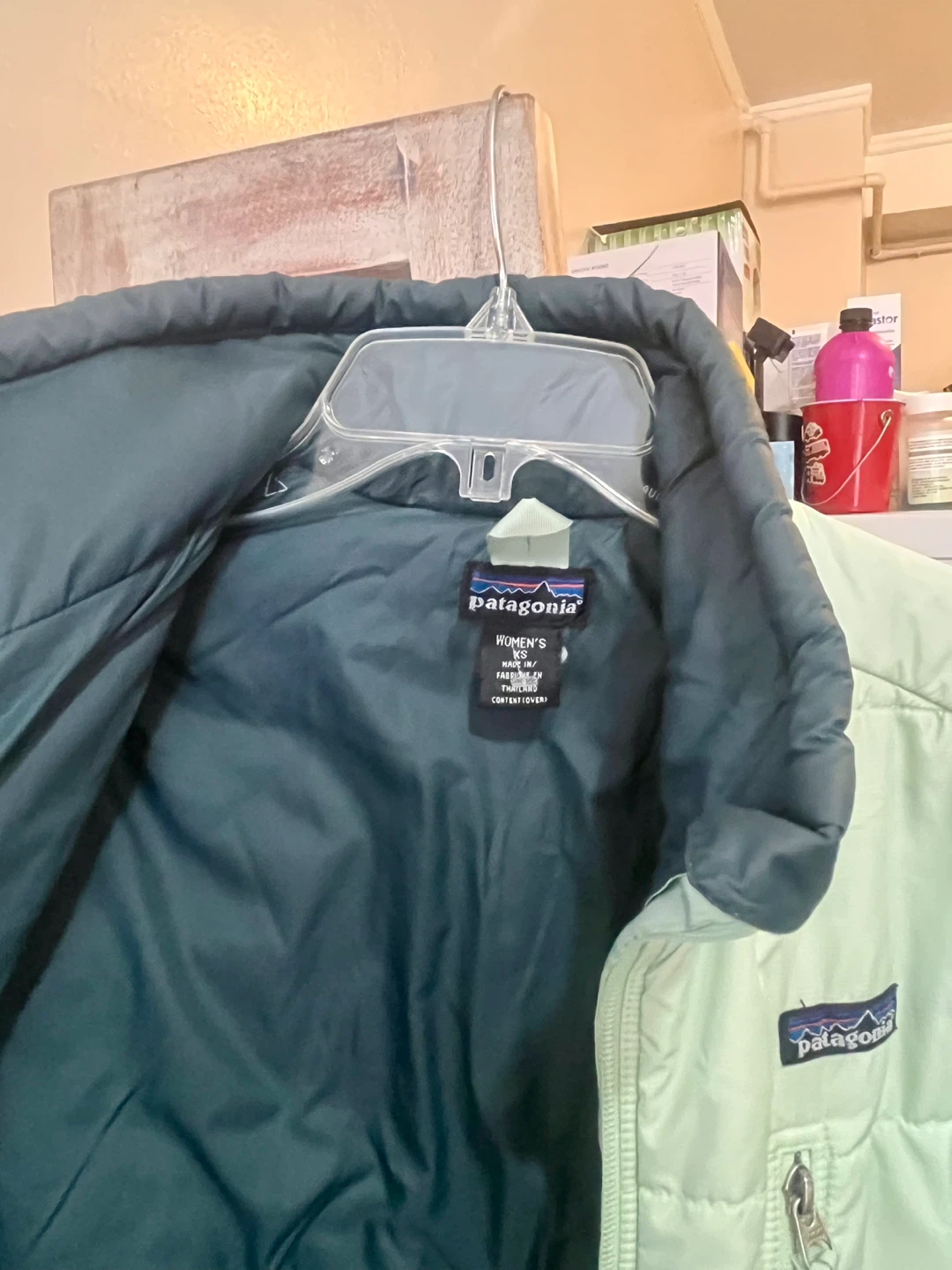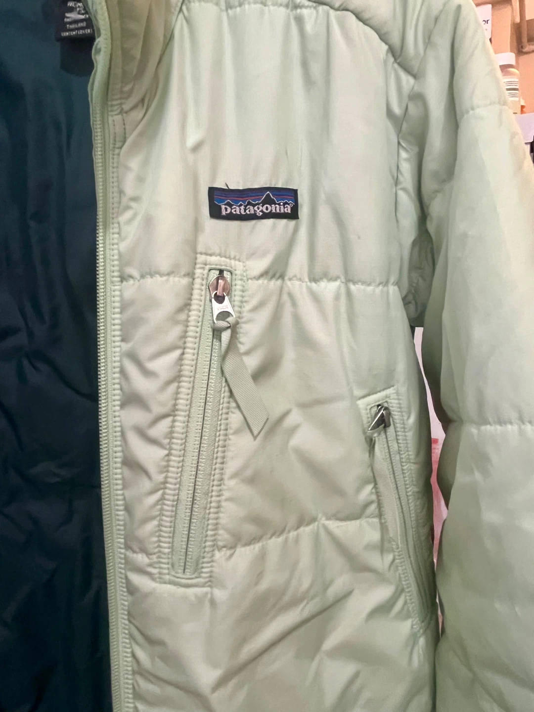 Selling a Patagonia puffer jacket in size XS men’s and medium women’s It's a mint green color on the outside with a dark green interior. Perfect for layering! Good condition offers are welcome