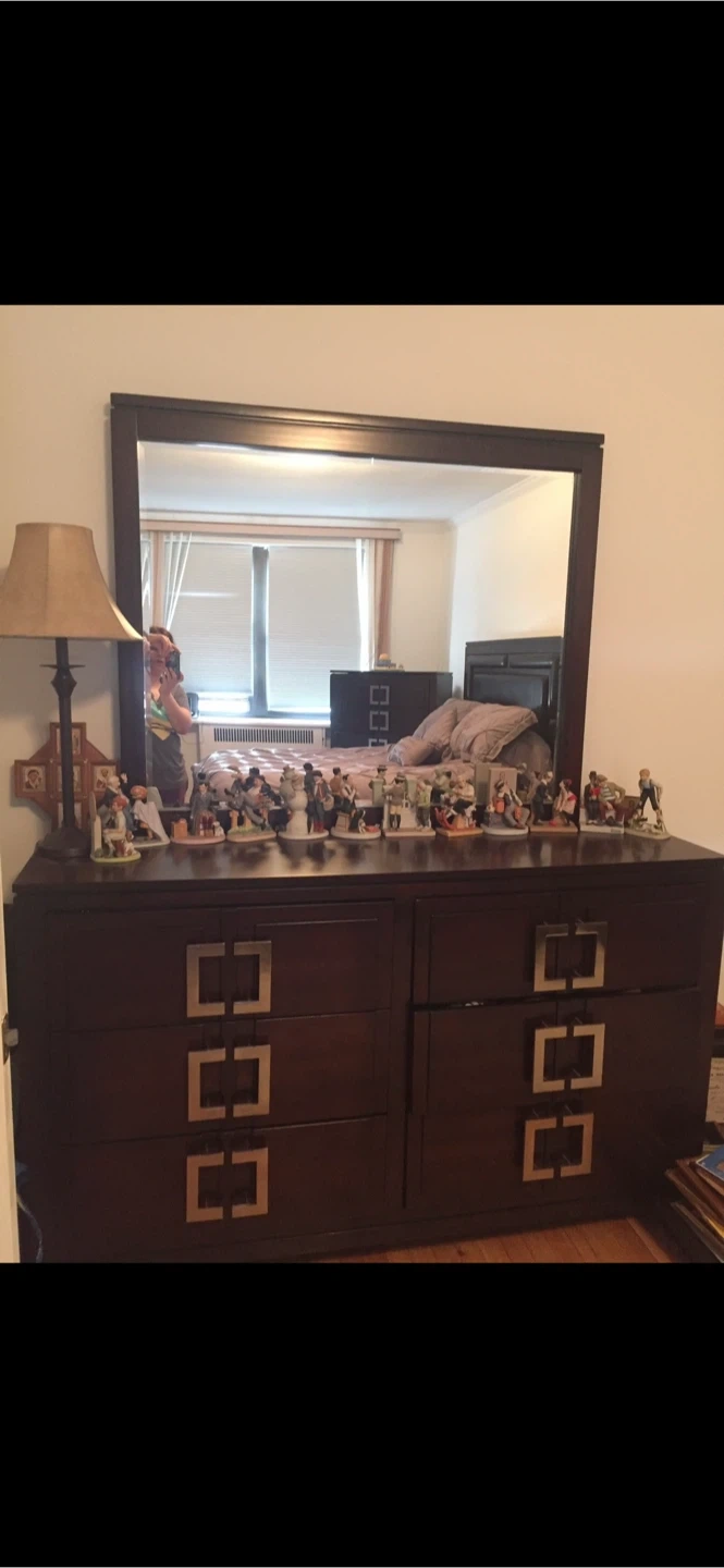 Good condition, there is a little water damage on one of the drawers. The tall dresser has a jewelry compartment flip top. Pick up in Rego Park elevator building.