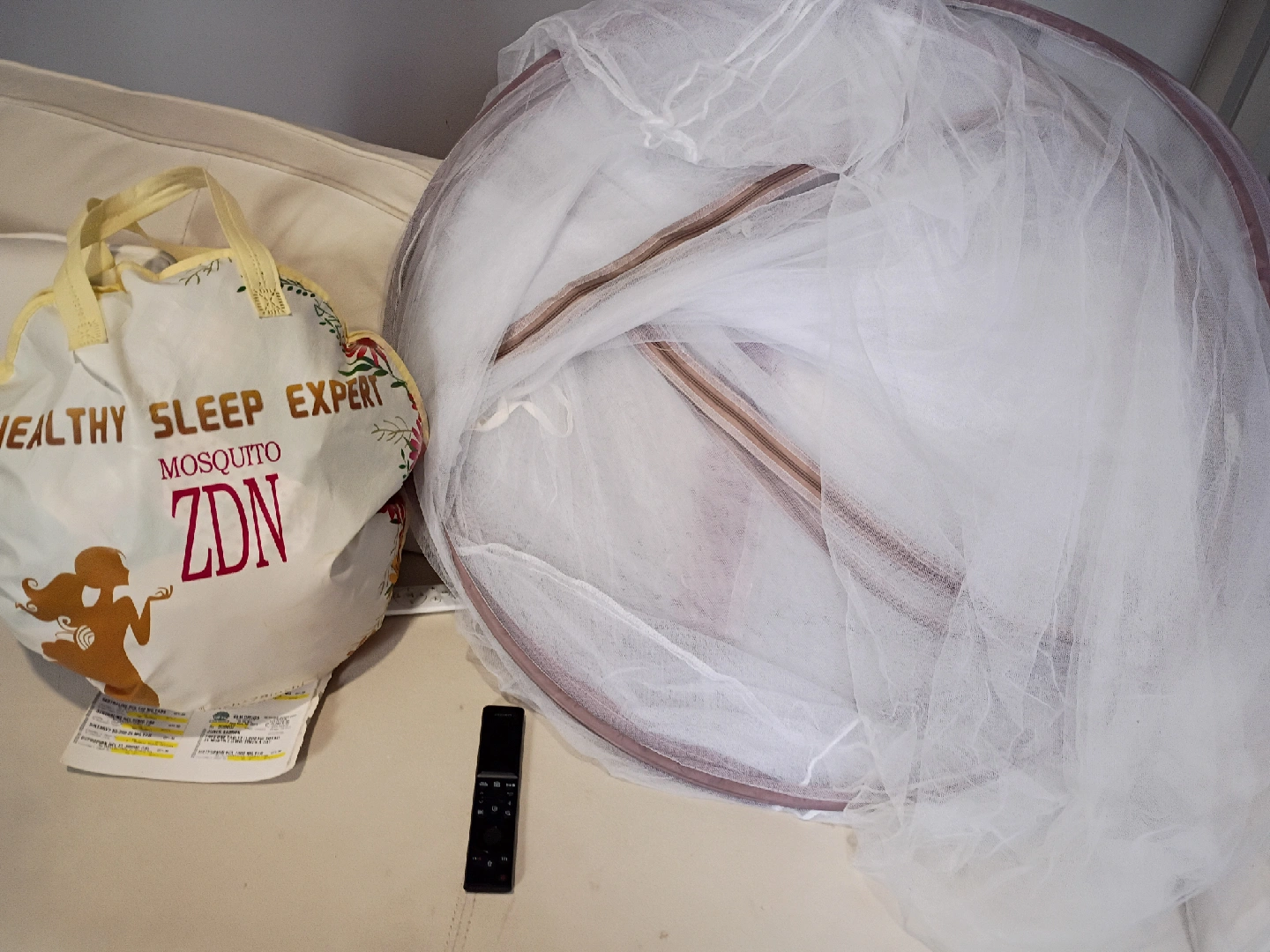 10This is a Healthy Sleep Expert Mosquito Net. It comes with a bag for easy storage and transport. Perfect for keeping those pesky mosquitoes away while you sleep! it has never been used and it's a queen size to go over queen size bed or let's say a bit of flowers anything maybe your children's twin size bed I say use it for whatever you want to use it for and enjoy it is zips up into the three different areas and it's really beautiful....