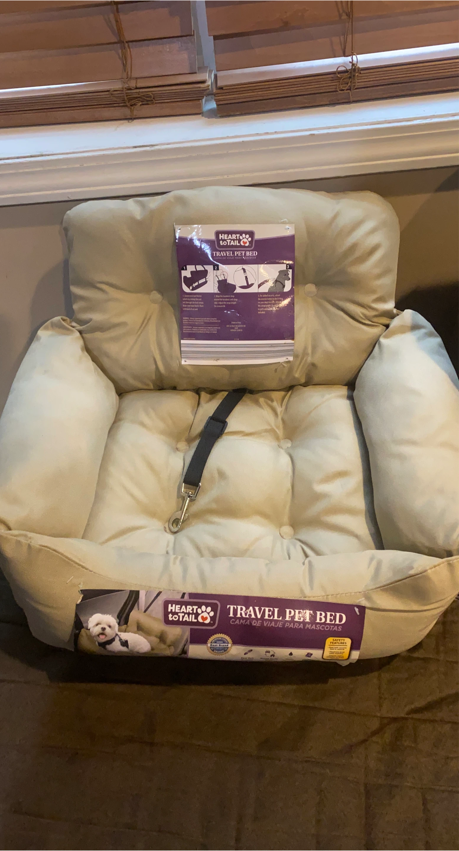 60Selling a Heart to Tail travel pet bed for your furry friend! This bed is perfect for keeping your pet comfortable and secure while traveling. It features a safety strap to attach to a car seat and is made with soft, plush materials for maximum comfort