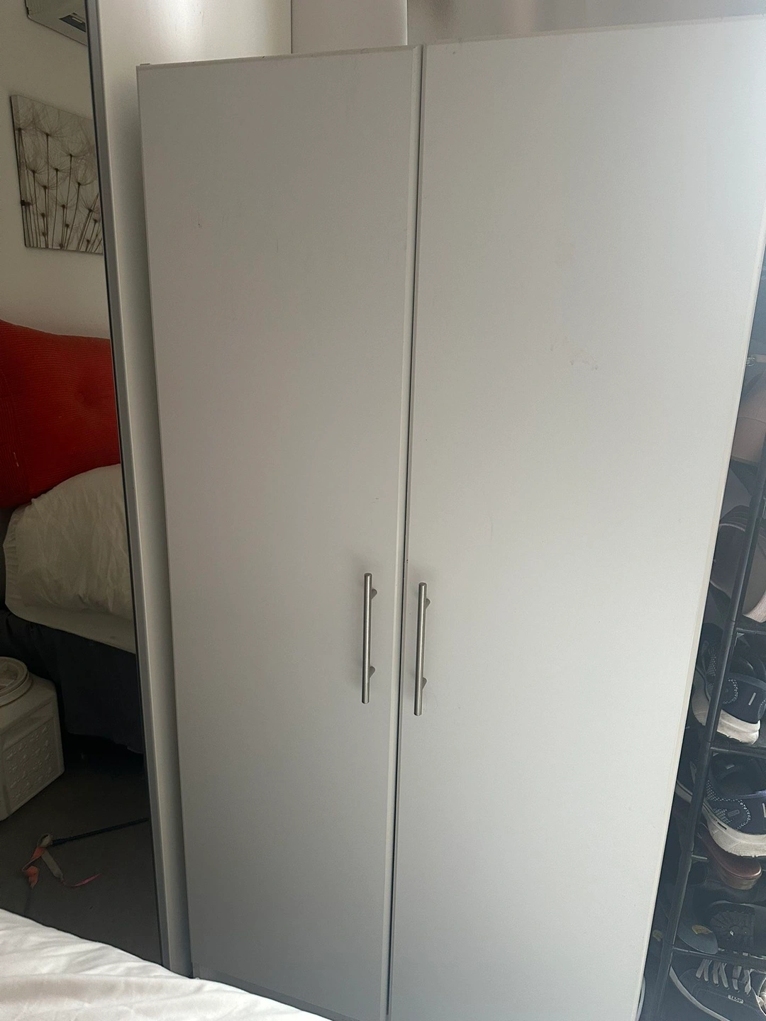 Heavy-Duty Clothes Armoire (white, nickel handles)