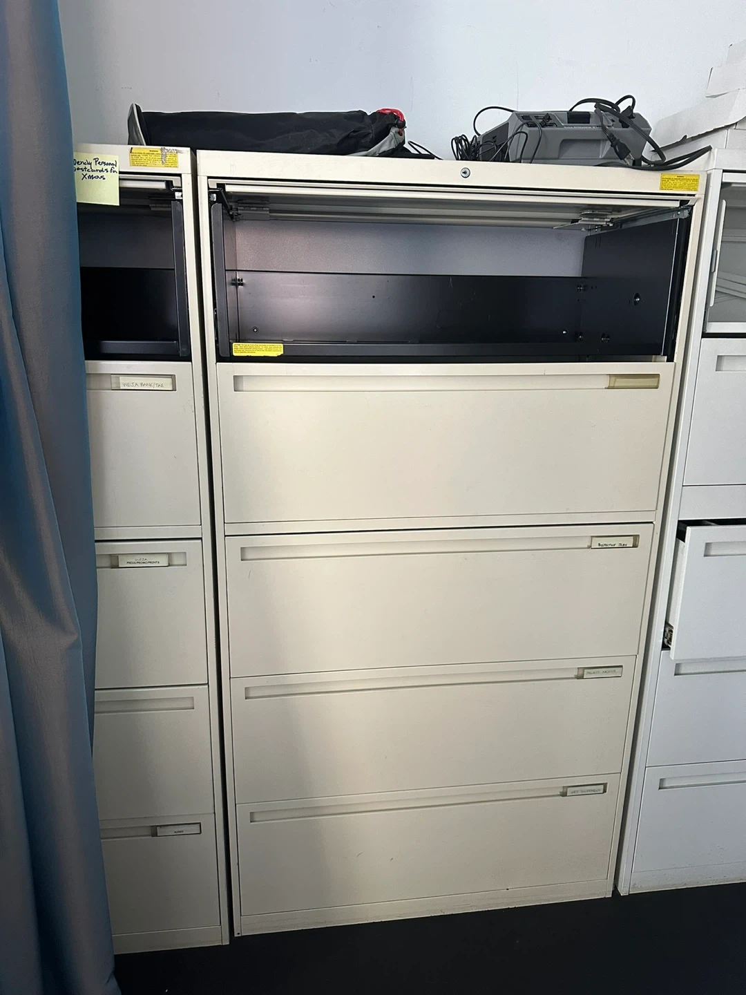 Selling several solid steel filing cabinets in great working condition. Perfect for offices, studios, or home organization. Drawers open smoothly and hold standard letter or legal-size folders. Details: β’ Commercial-grade steel construction β’ 4-drawer and 5-drawer models available β’ Clean and sturdy (minor cosmetic scuffs) β’ Lockable top drawers (keys not included) Dimensions: Standard 18β deep x 36β wide x ~52β high π° $150 each or $400 for all three Pickup only β located near 59th street and Park Ave