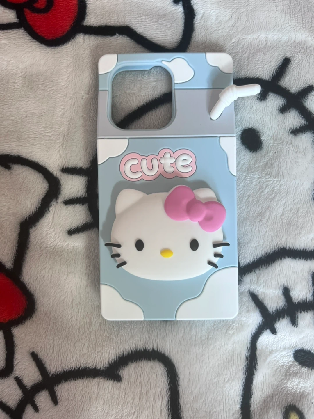 Selling a super cute Hello Kitty phone case for the iPhone 14 Pro Max! It's light blue and has a fun, 3D Hello Kitty design. Perfect for any Hello Kitty fan!