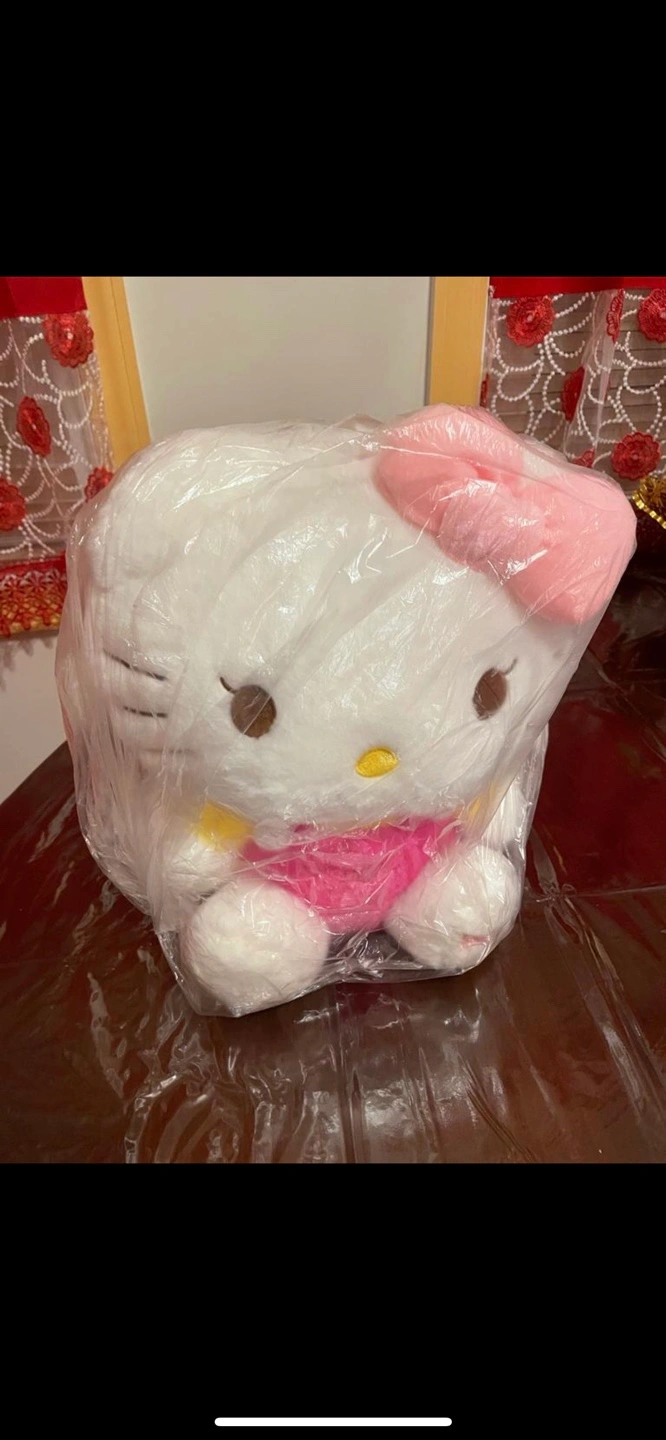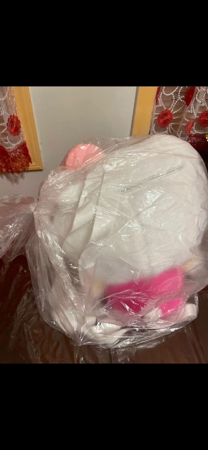 49Large Hello Kitty plush/ backpack white with pink accents. Brand new in plastic packaging.