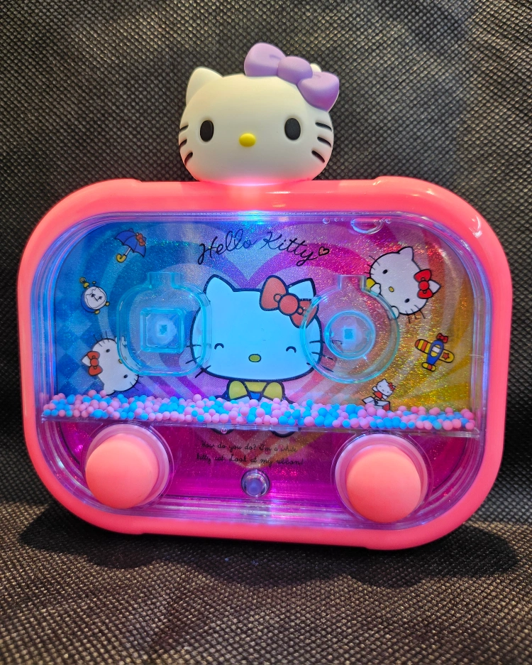 This is a super cute Hello Kitty water game! It features Hello Kitty in a colorful water-filled environment. It's a fun and nostalgic game to play with a unique design! It also lights up!