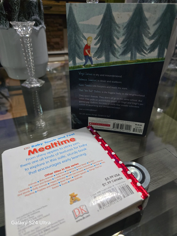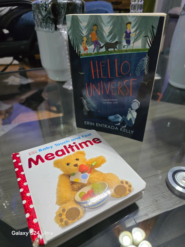 Selling the book Hello, Universe by Erin Entrada Kelly and Baby Touch and Feel Mealtime book. It's a great read! $5 each