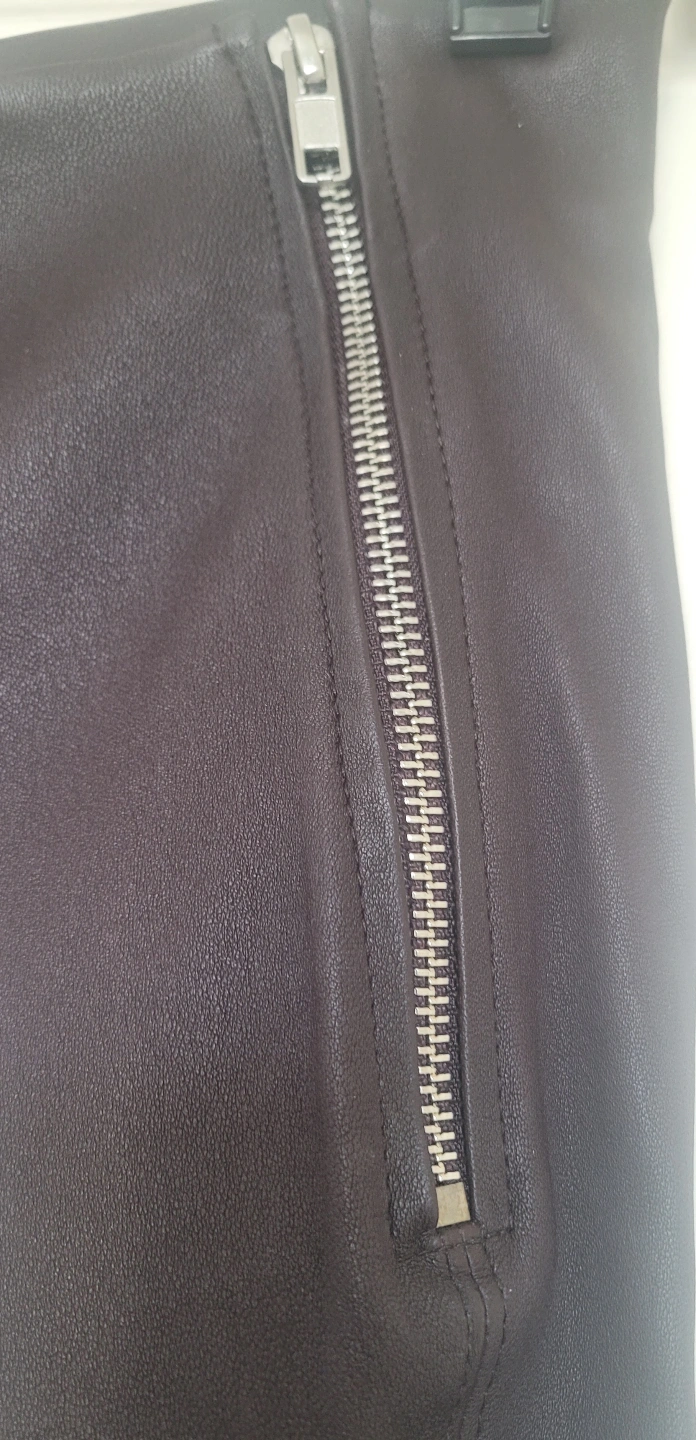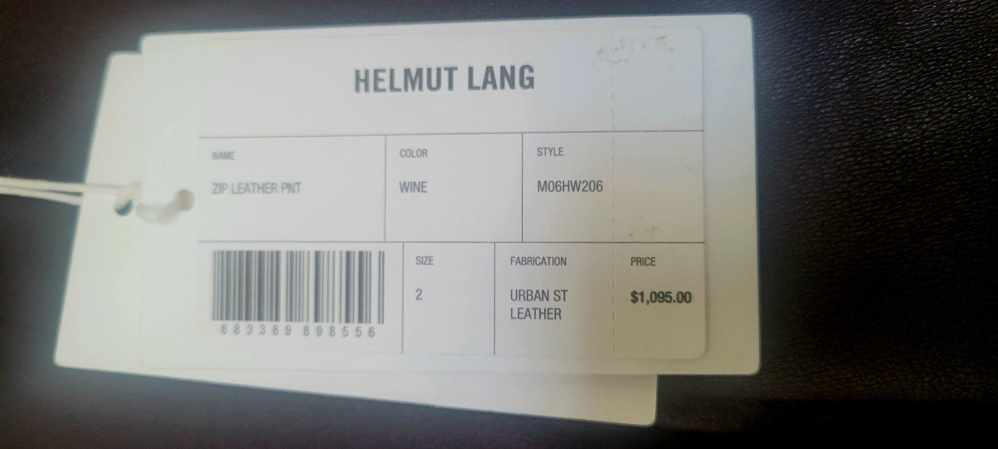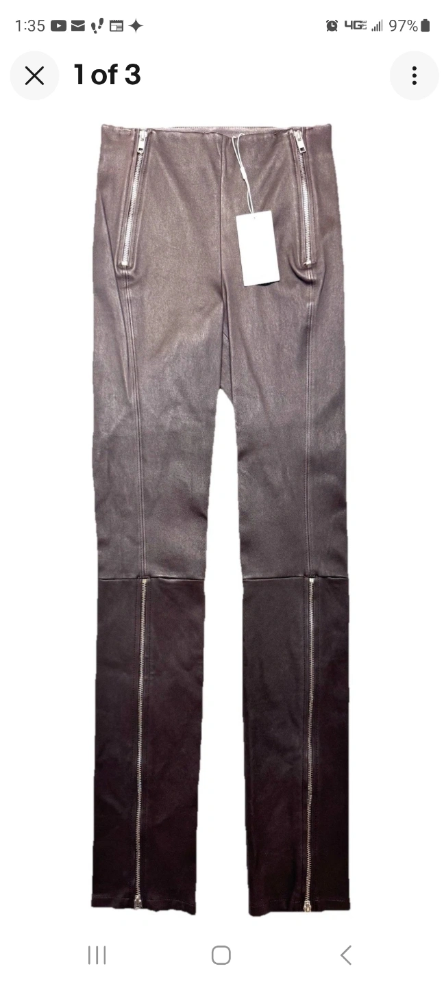 24Helmut Lang Reddish Brown Leather pants. Size 2, but could fit 4 or 6 too. Stretch leather. Wine color. Zip details. Urban Street Leather. Very flattering and cool. Have one myself. Retails for $1095