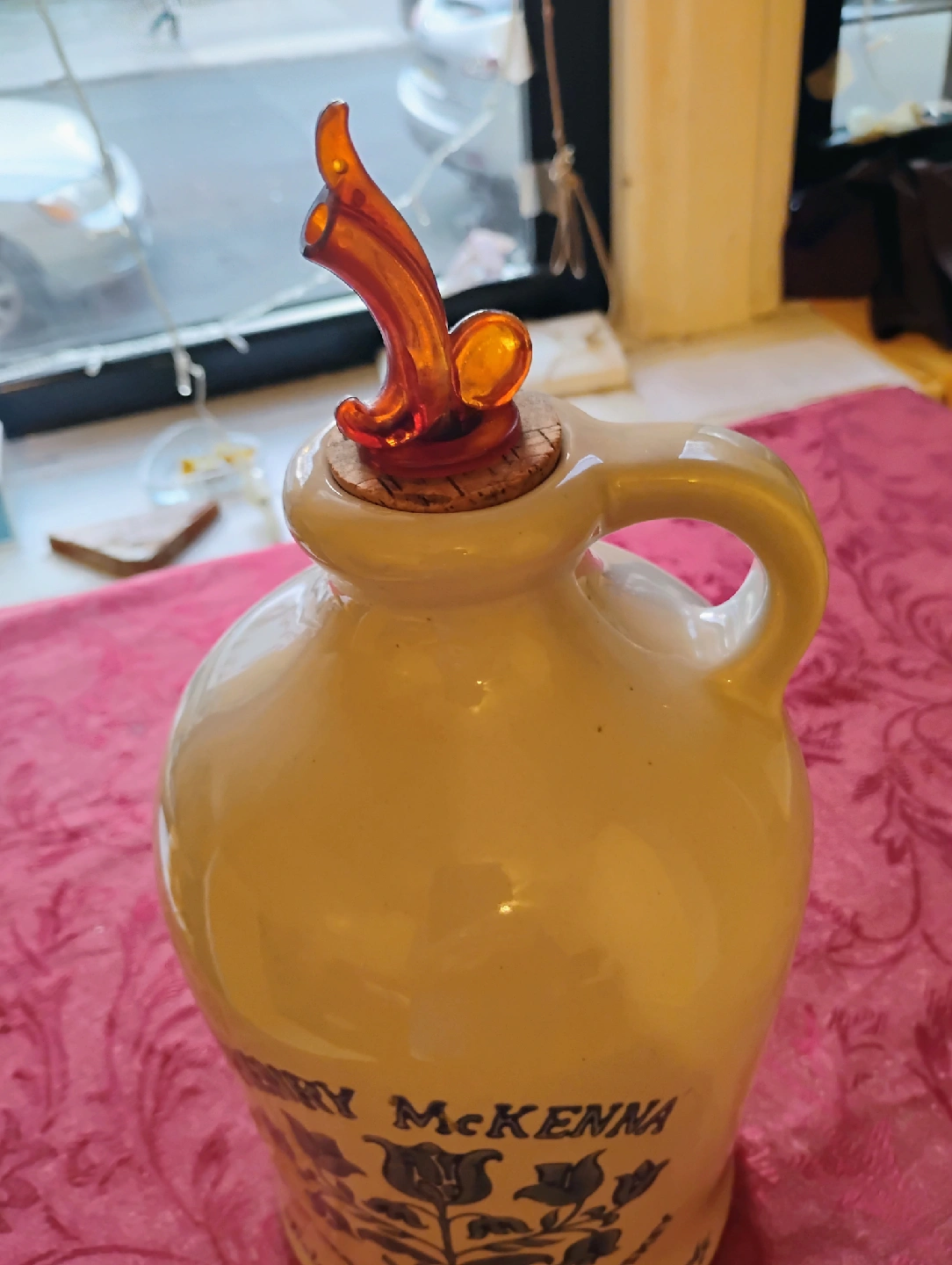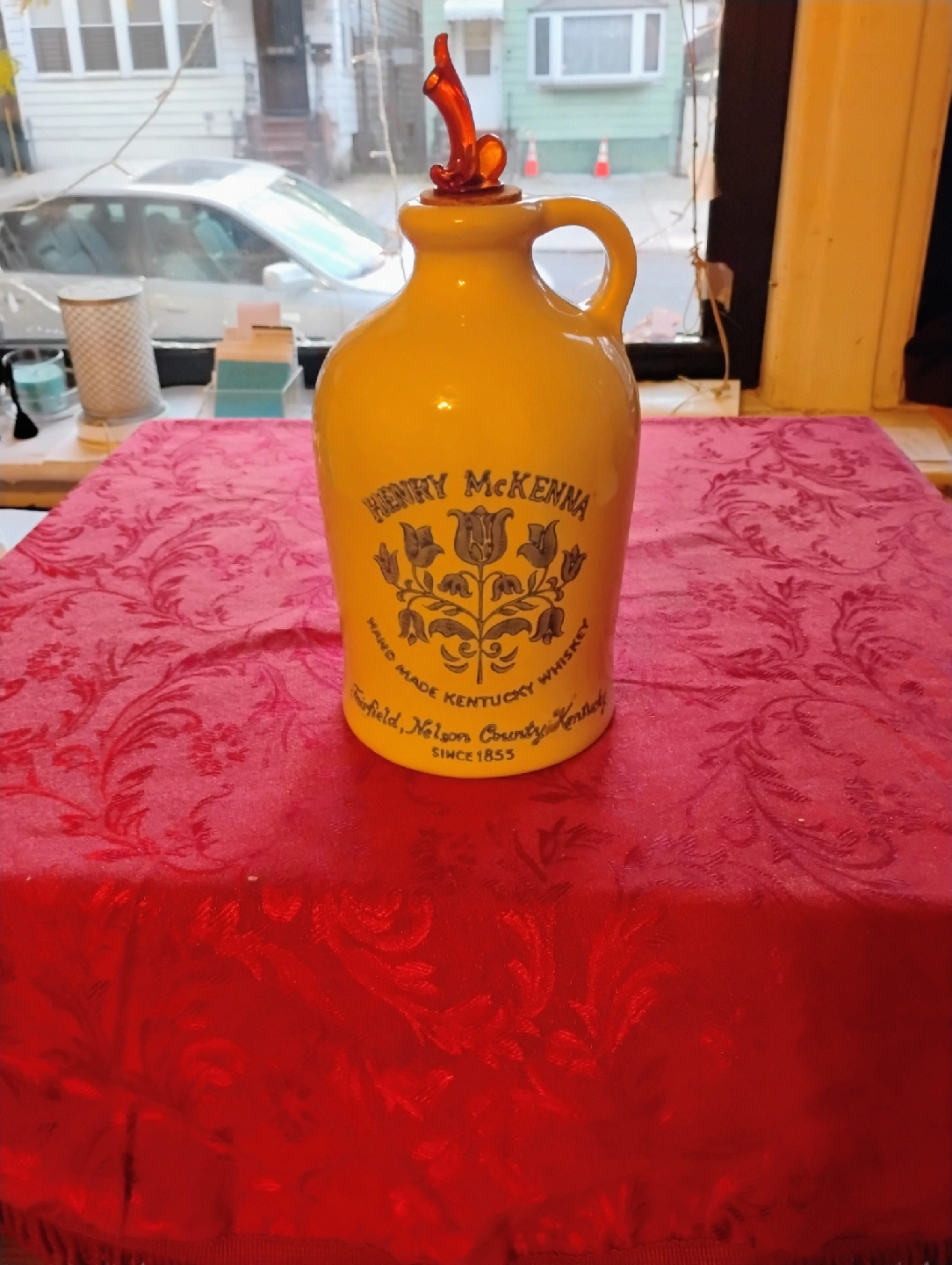 30Selling a vintage Henry McKenna whiskey jug! It's a half-gallon size and features a unique glass stopper. Great for collectors or as a decorative piece!