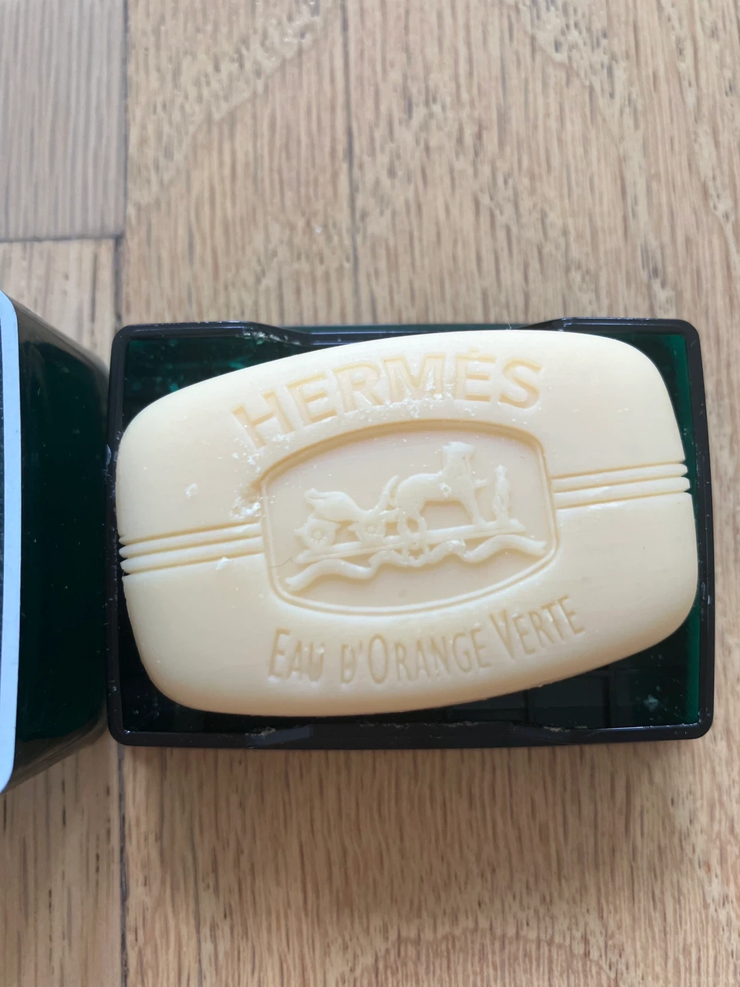 Brand new Hermès Eau d'Orange Verte perfumed soap. It comes with its original box. The soap is lightly scented and very luxurious! 25g.