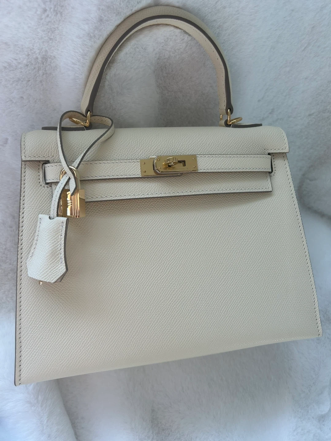 65Selling a beautiful Hermès Kelly 25 Sellier bag in Écru color with gold hardware! This iconic bag is a timeless piece and is in excellent condition. The size is perfect for everyday use. Don't miss out on this opportunity to own a classic!