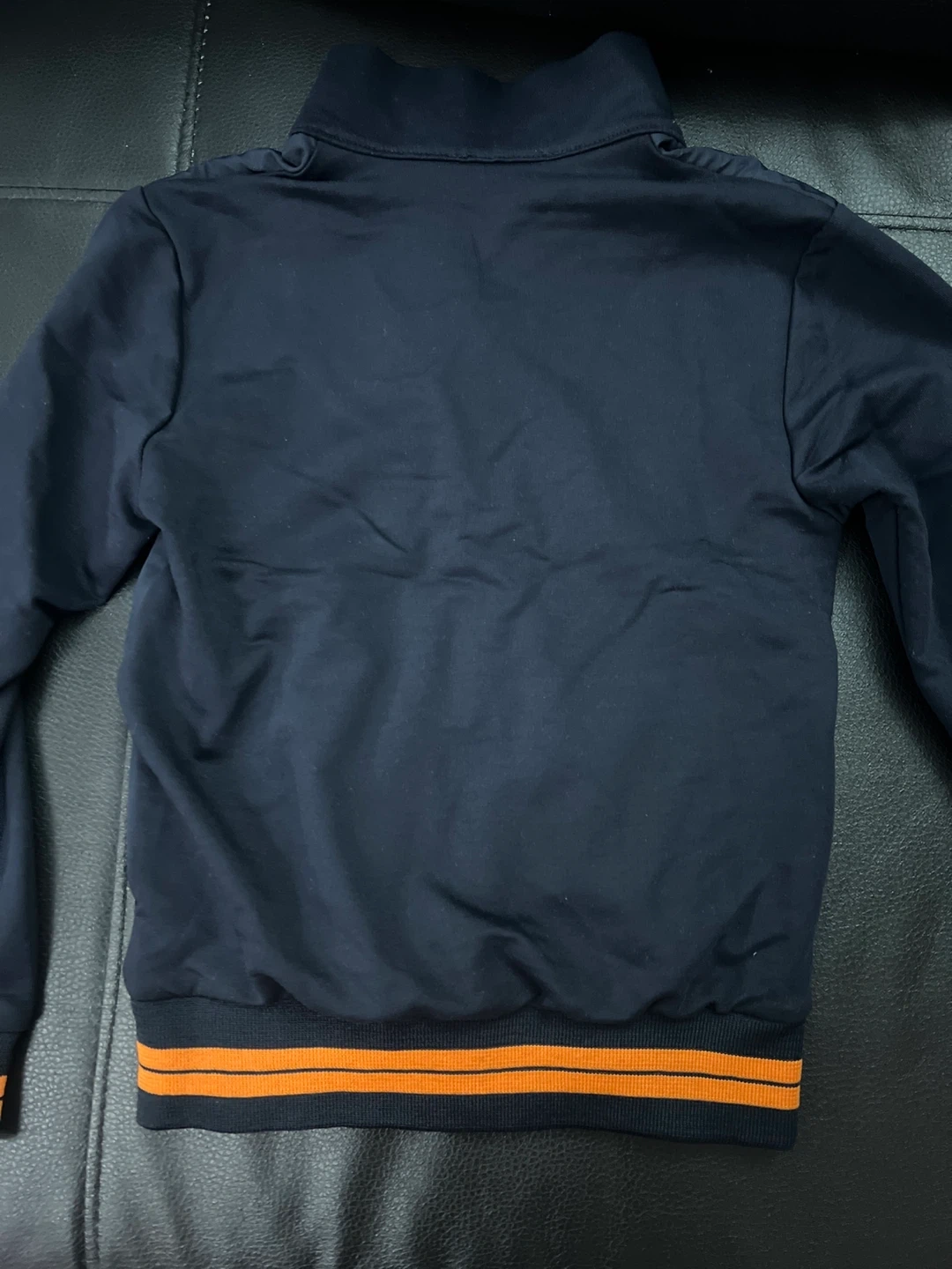 34Here's a stylish Hermès Paris jacket! It's a sleek navy color with orange accents, giving it a sporty yet sophisticated look. Perfect for layering or wearing on its own