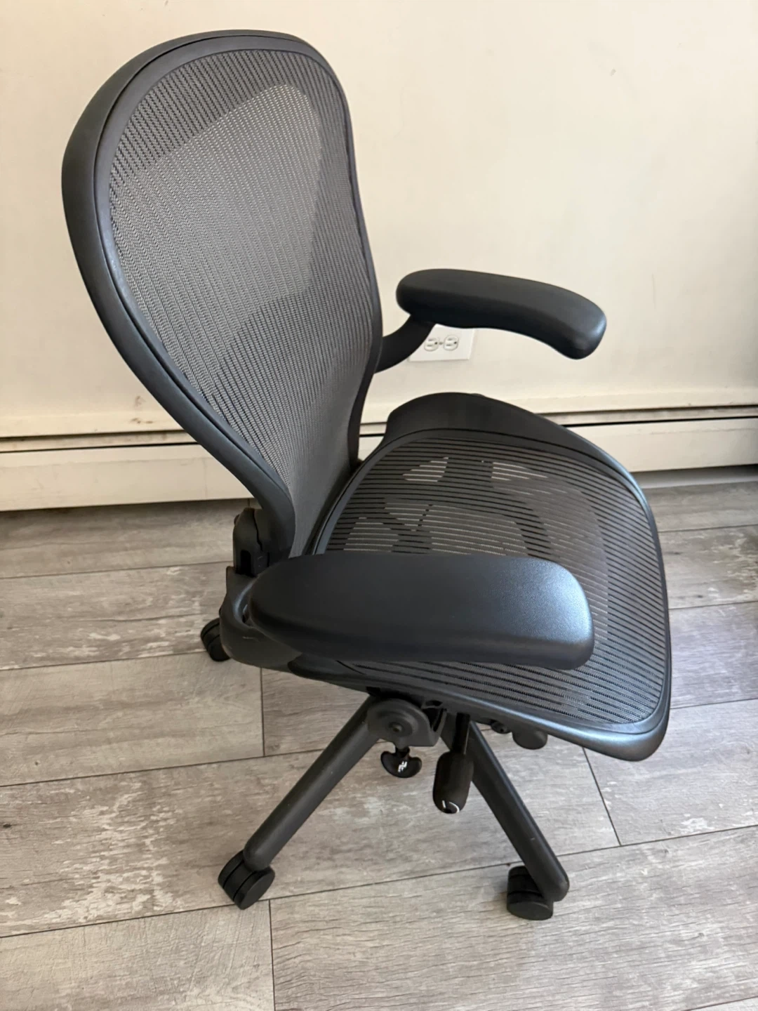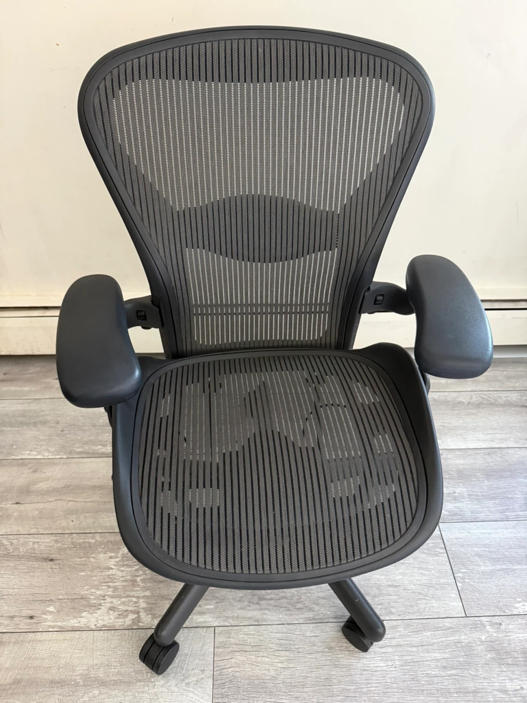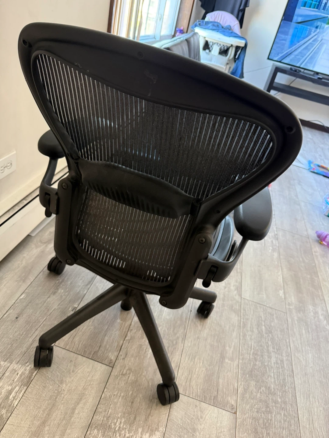 Selling a Herman Miller Aeron chair in good condition! It's a size B and has a mesh back and seat. This chair is known for its ergonomic design and comfort, perfect for long hours of work or gaming. It's a great addition to any home office setup!