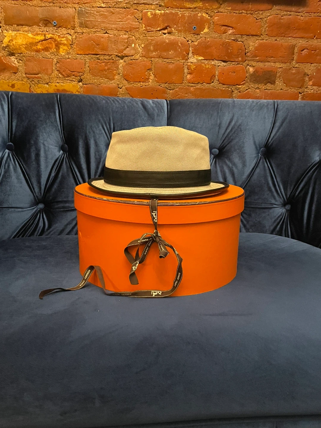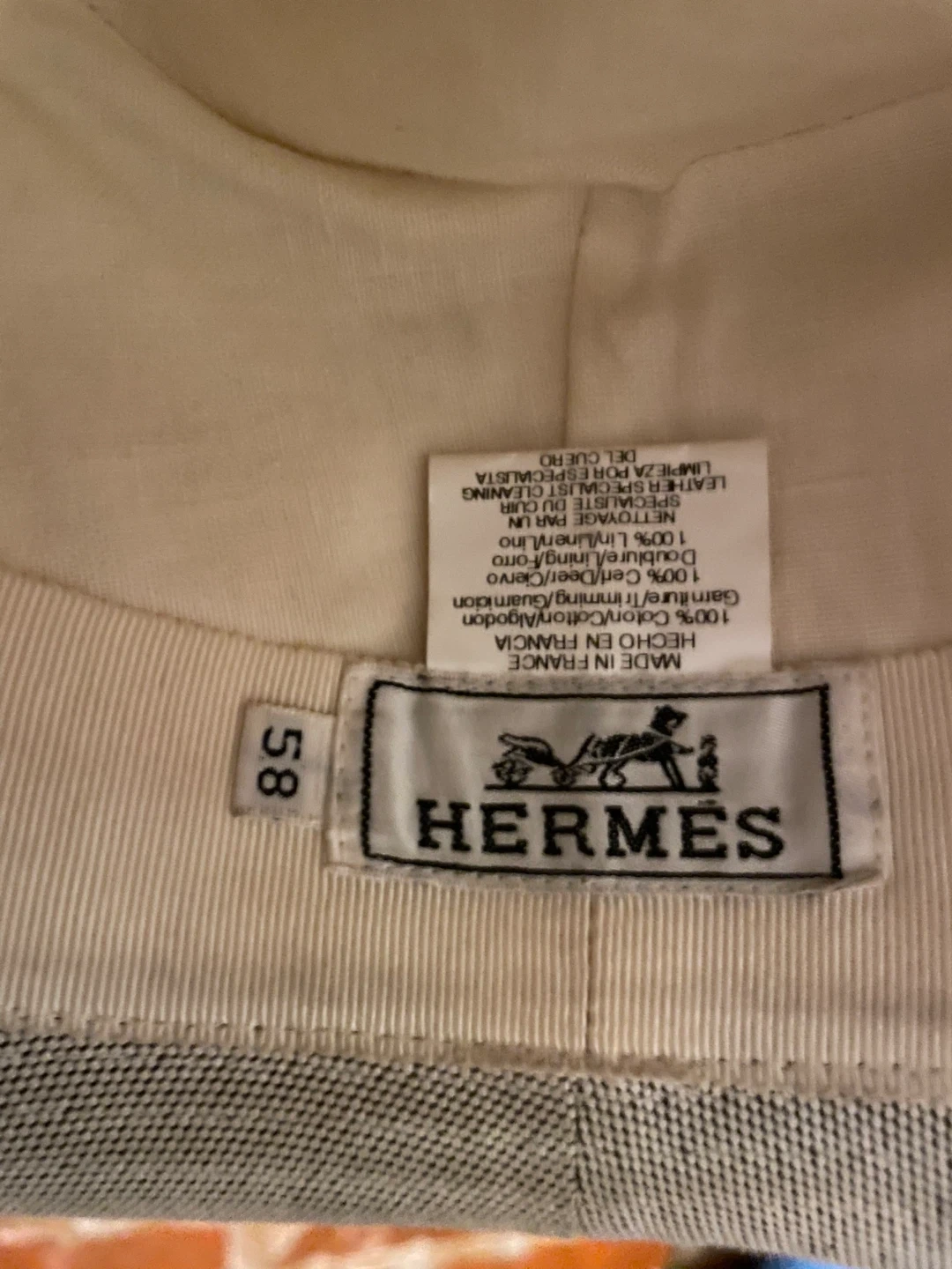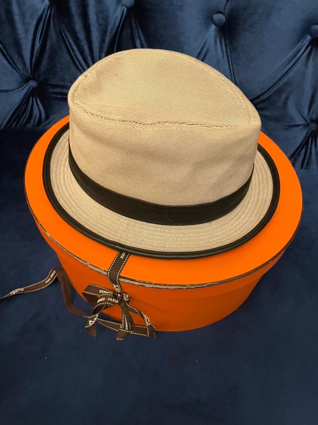 82Selling an Hermes hat in size 58. It is made of 100% cotton with a lining of 100% linen. The hat comes with its original box!