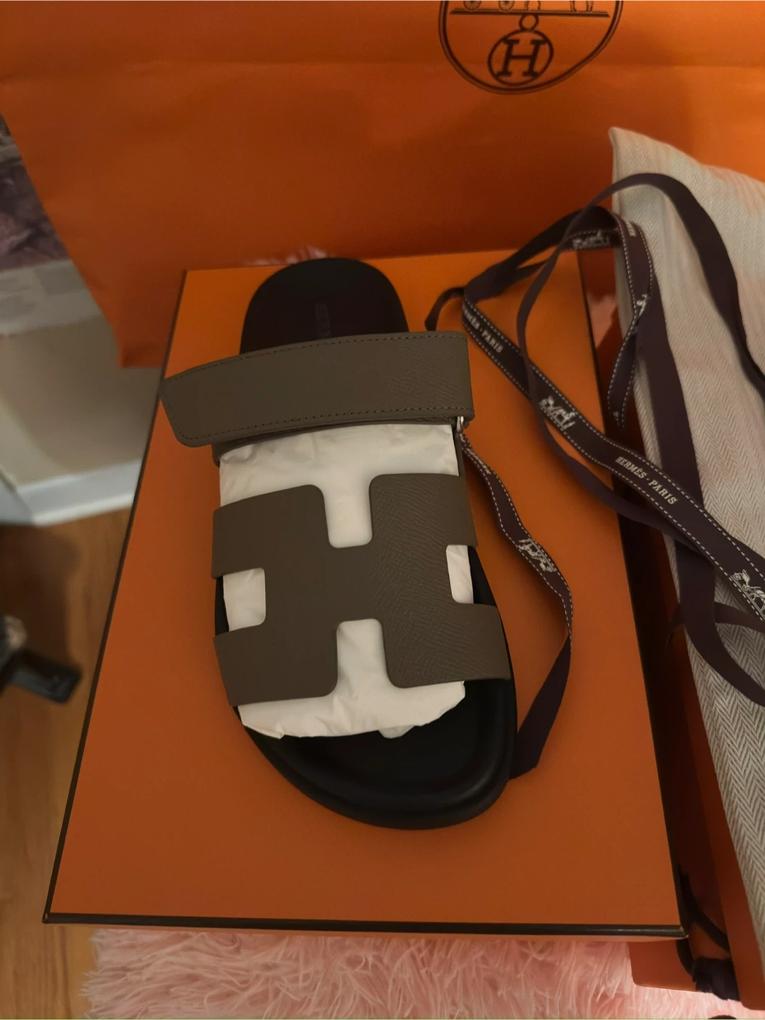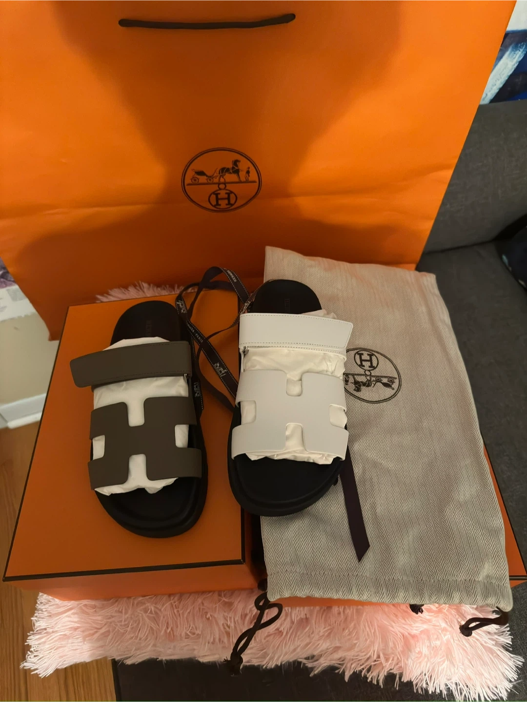 5Selling a pair of AUTHENTIC Hermes Chypre sandals! They come with the box and dust bag. These are a stylish and comfortable addition to any wardrobe. Message me if you're interested!