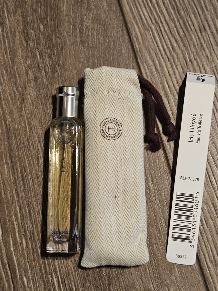 36Selling a bottle of Hermes Iris Ukiyoe Eau de Toilette. It contains 15ml/0.5 fl oz. Comes with the original pouch