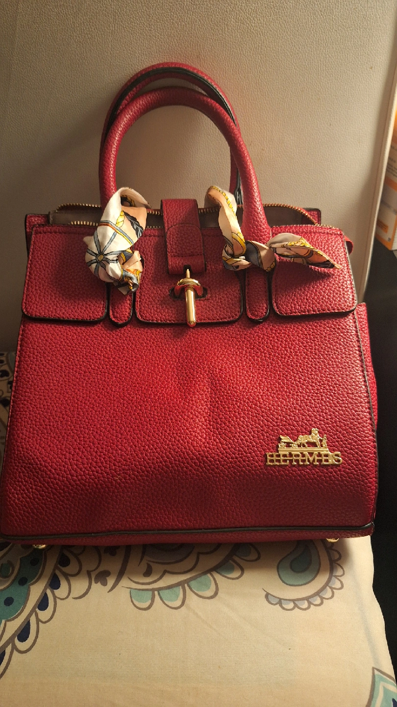 Selling a stylish Hermes handbag in a beautiful red color. It's made of leather and features the iconic Hermes logo. Perfect for adding a touch of elegance to any outfit!