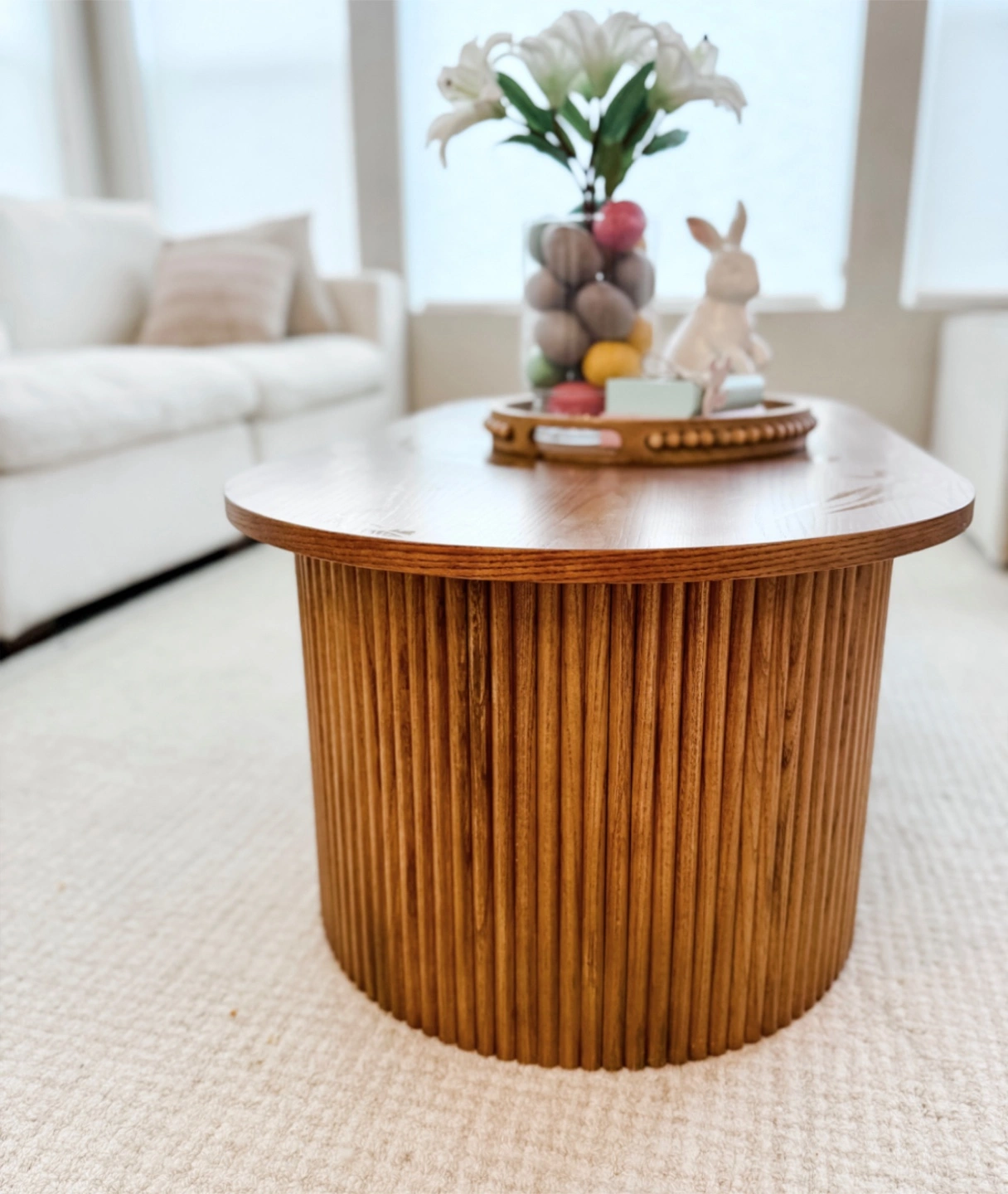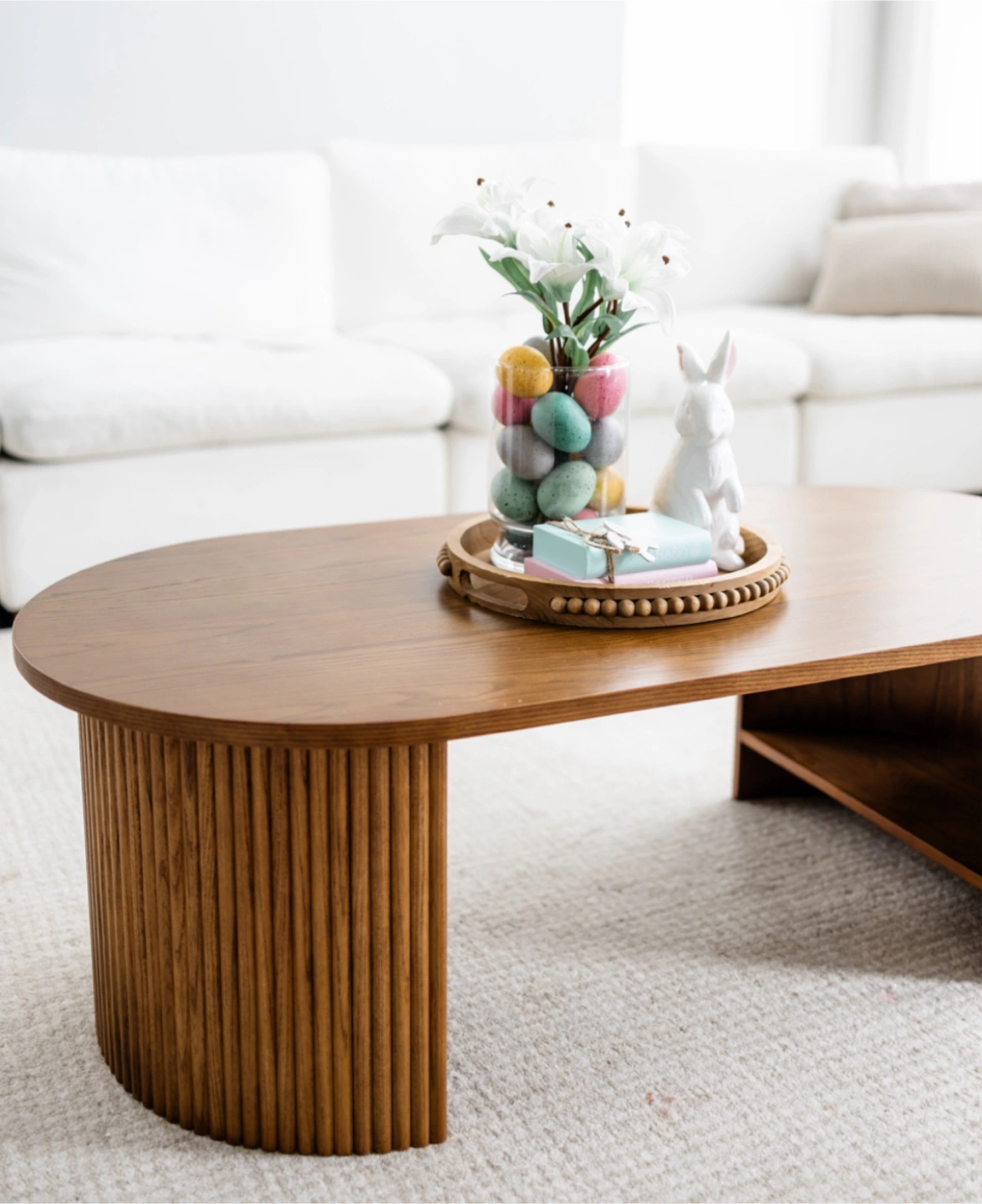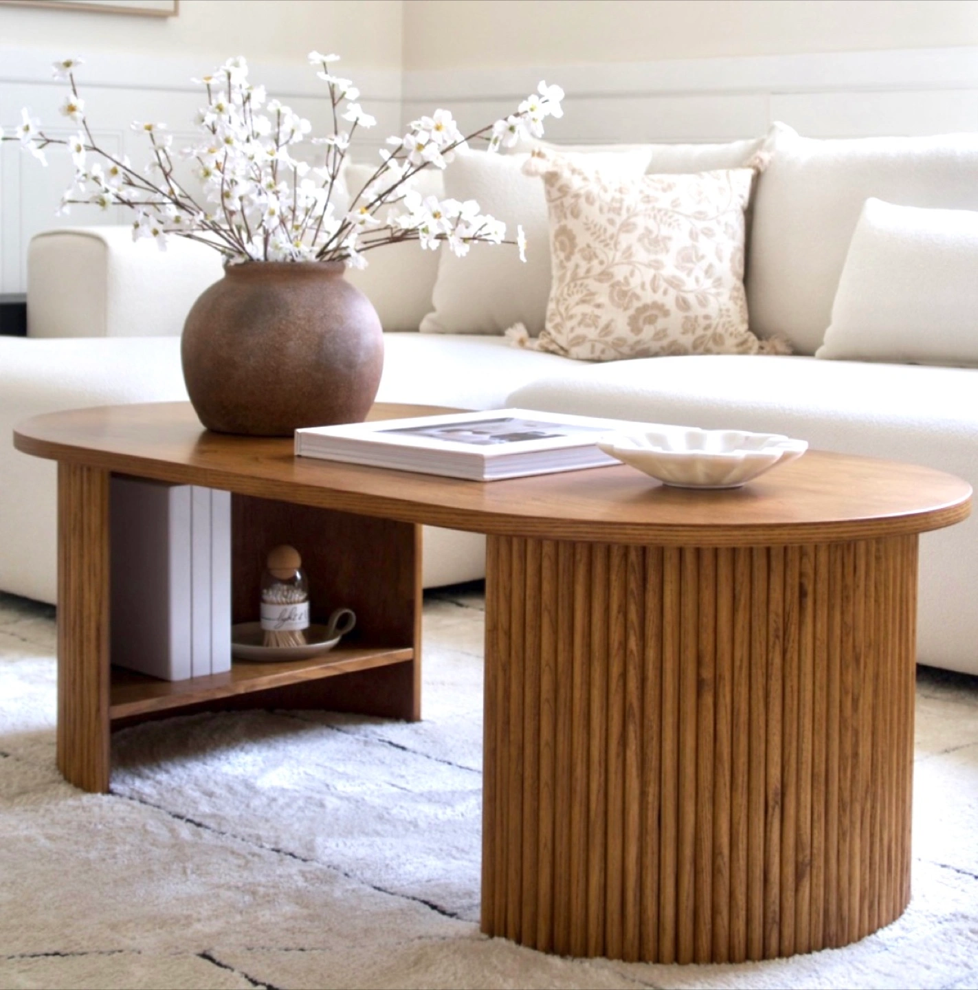114HERNEST Rolf 47" Oval Coffee Table in great condition! This stylish coffee table features a unique oval shape and a beautiful natural ash wood finish. It's the perfect centerpiece for any living room setup, size: L 47.2” x D 23.6” x H 15.7”. Pick up from queens Elmhurst