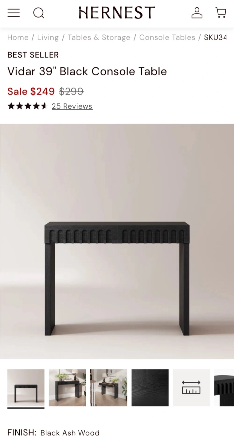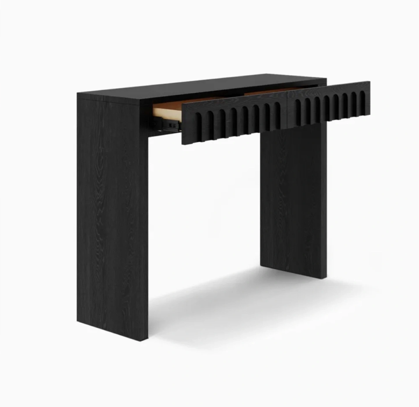 114Selling a HERNEST Vidar 39" black console table, brand new in package, easy to transport, very easy to assemble. It's a stylish piece perfect for any entryway or living space. The console table is made of black ash wood and features a unique design. Overall size: 40”W 30”H 12”D Pick up from queens Elmhust