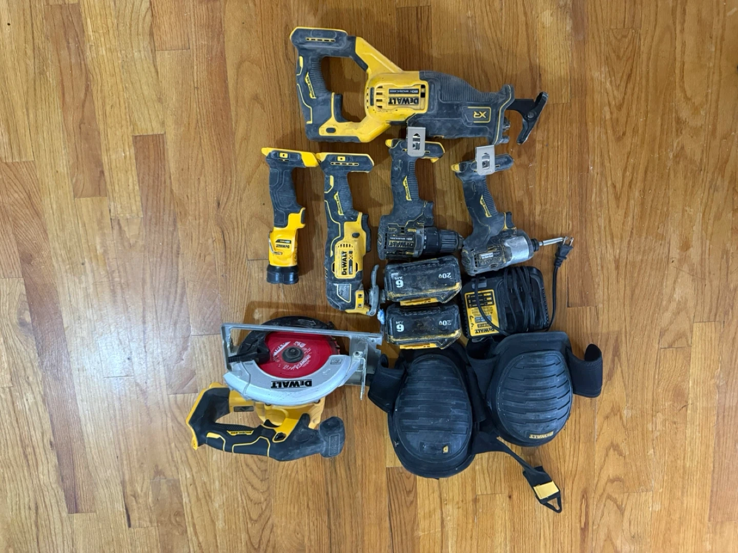 5Taladros,accesorios, baterías y cargador. Marca DeWalt.