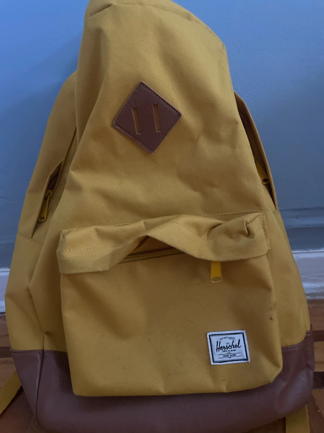 10Selling a Herschel Supply Co. backpack in yellow. It has a red and white striped interior lining. Perfect for school or travel!