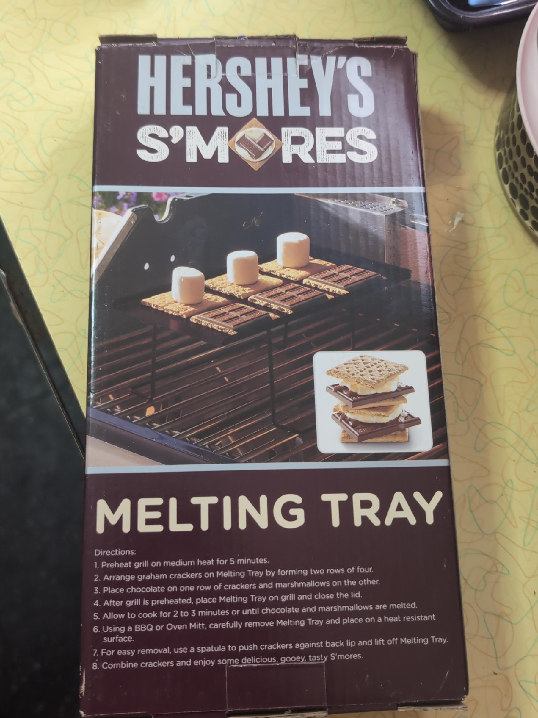 Selling a Hershey's S'mores melting tray! It's perfect for making delicious s'mores on the grill. Just arrange graham crackers on the tray, add chocolate and marshmallows, and cook until melted. Enjoy some delicious, gooey, tasty S'mores Never Used!!!!!