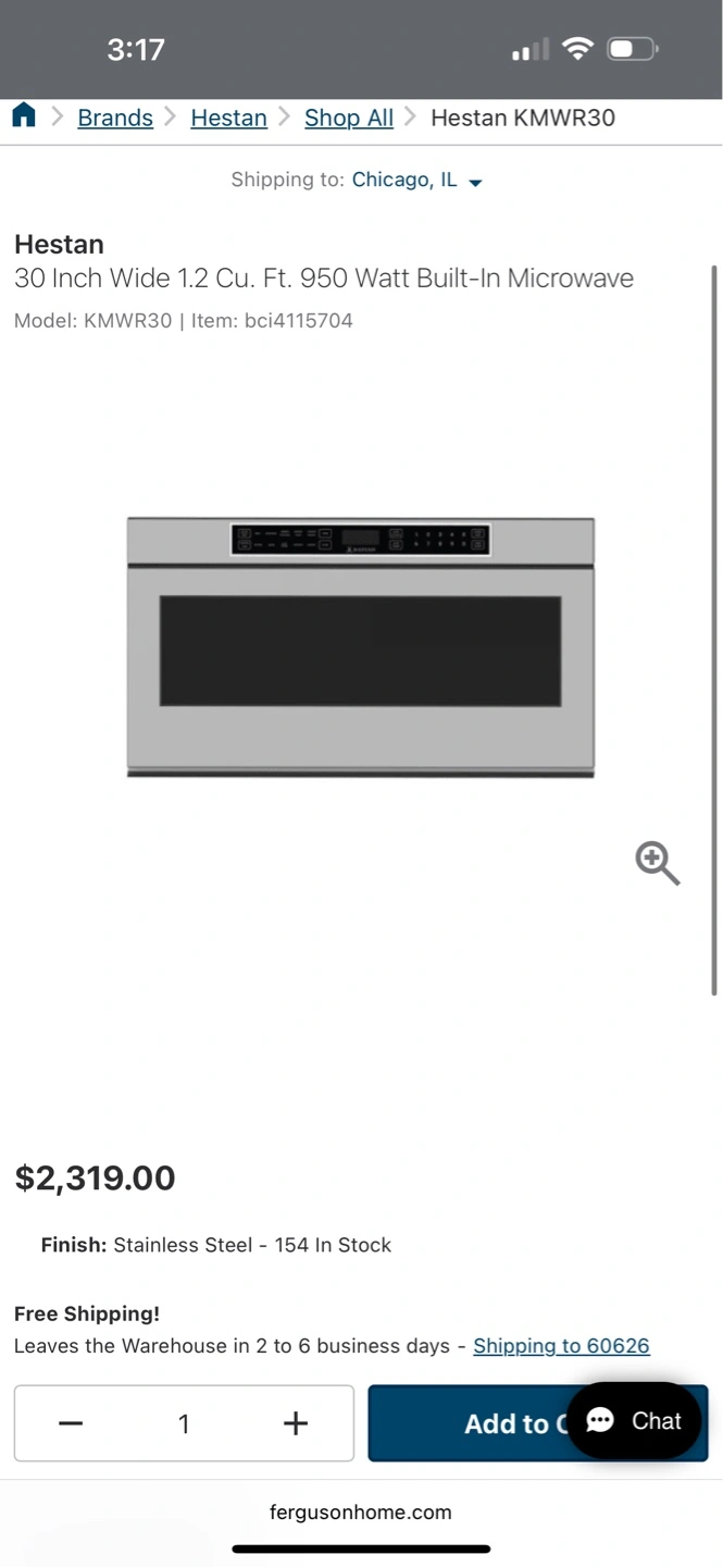 Brand new never opened. 3 available . Hestan 30 Inch Wide 1.2 Cu. Ft. 950 Watt Built-In Microwave. The model number is KMRW30. It features settings for melt/soften/warm, interior light, and a child lock. It's finished in stainless steel. Cash only Would deliver within 2 miles of 60202