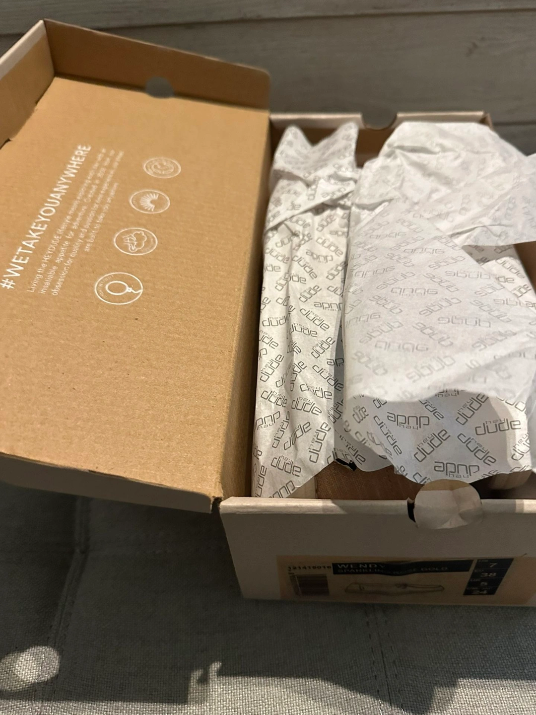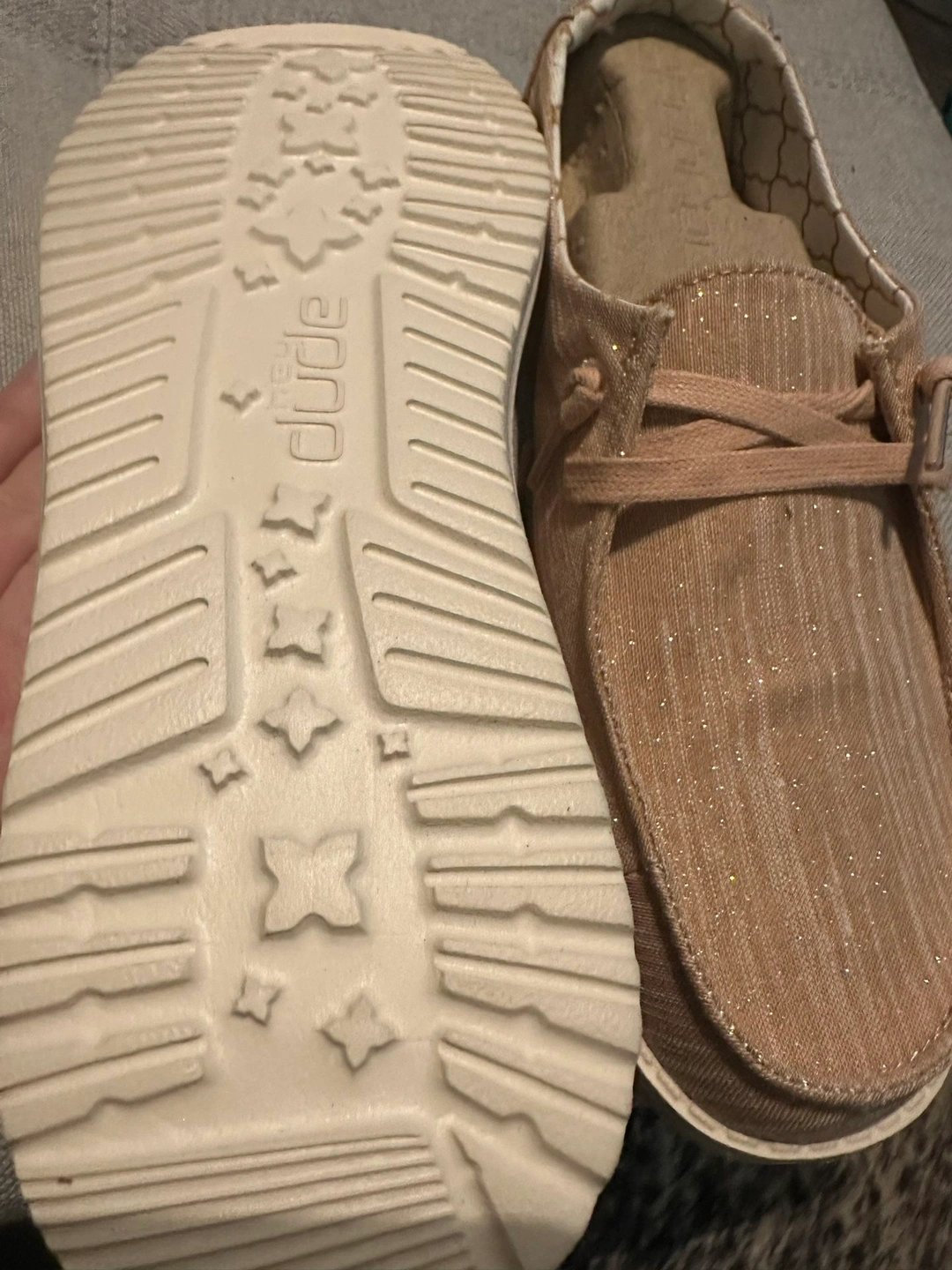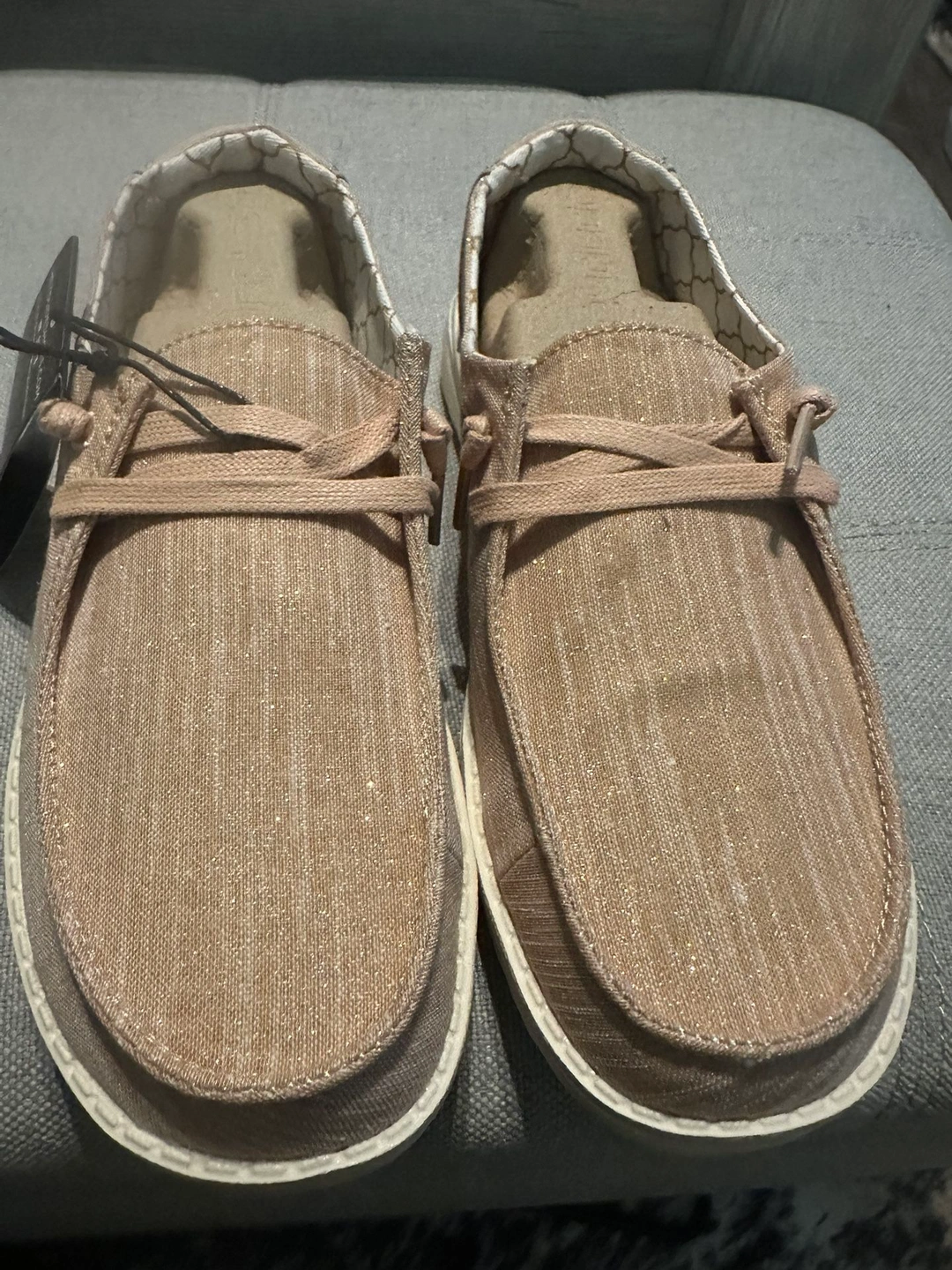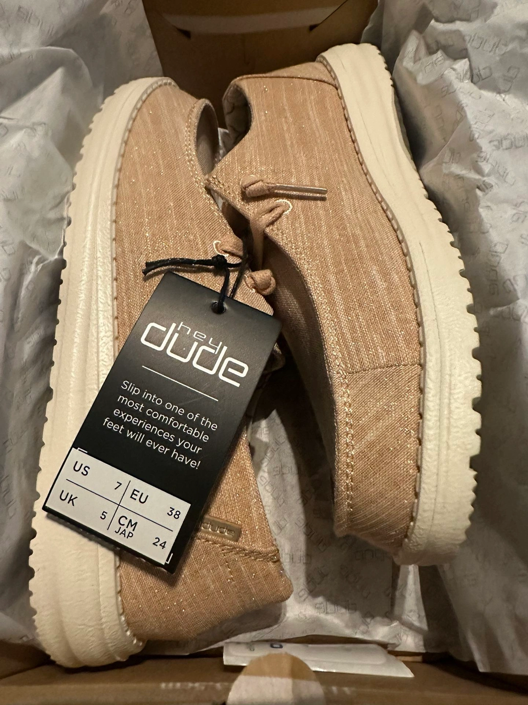 Hey dudes brand new with box rose gold metallic women’s size 7 Cash only at pick up Size: 7 Brand: Hey dude