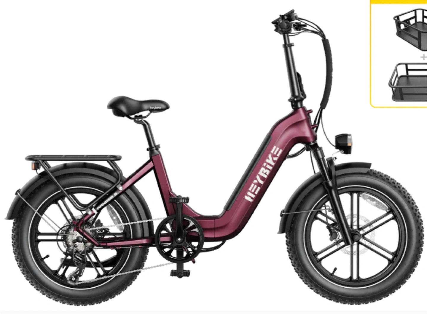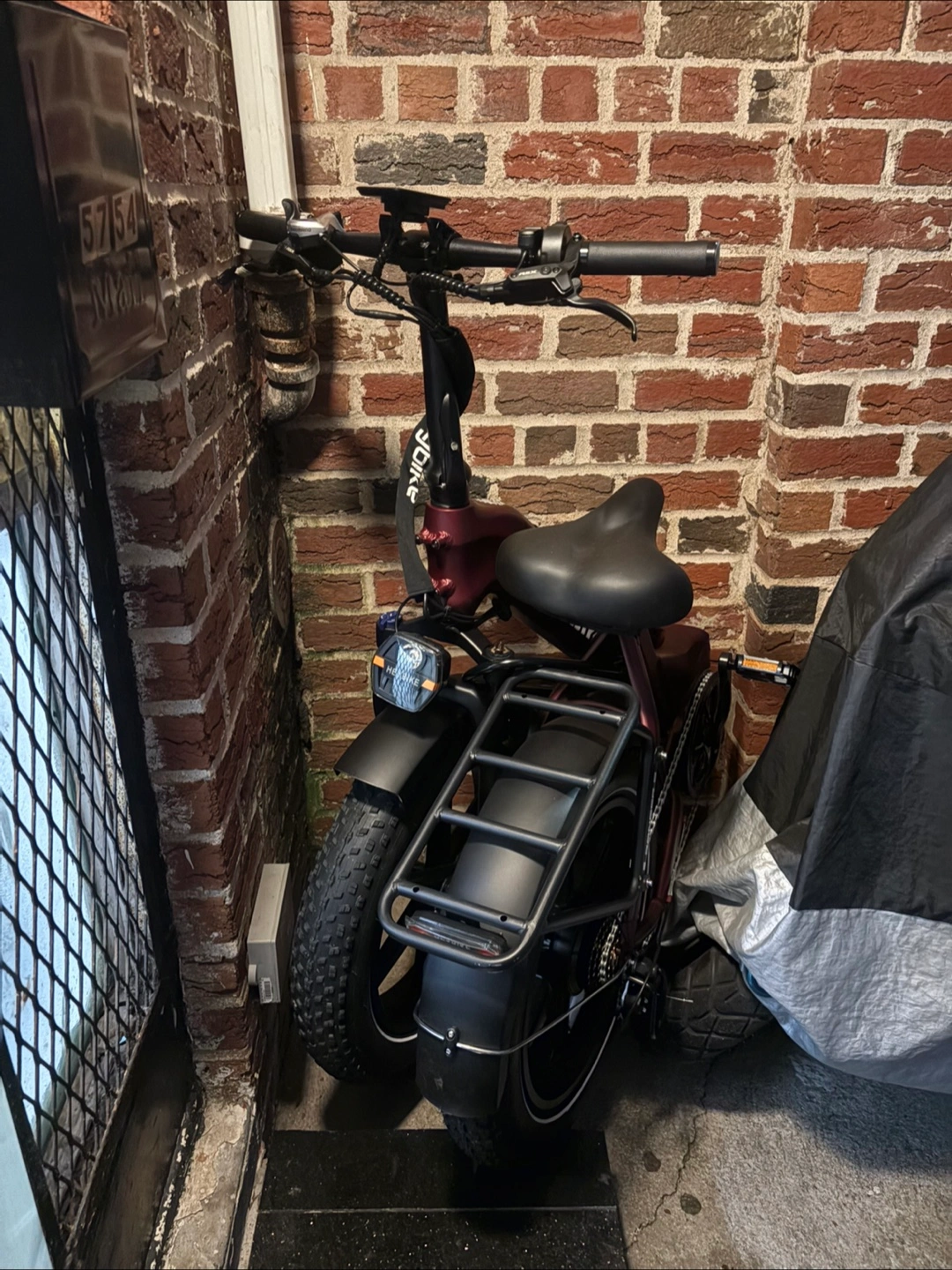60Folding electric bike. Fat tires. Burgundy color. Includes basket. Already assembled and ready to ride to its new home. Need gone ASAP!!