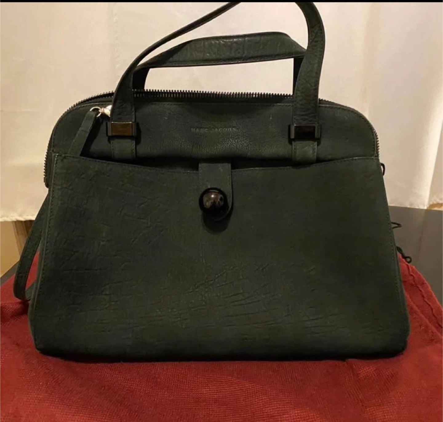 Selling a gently used Marc Jacobs satchel in black leather. It's in good condition and ready for a new owner! The bag features a top zipper closure and a front flap with a button.