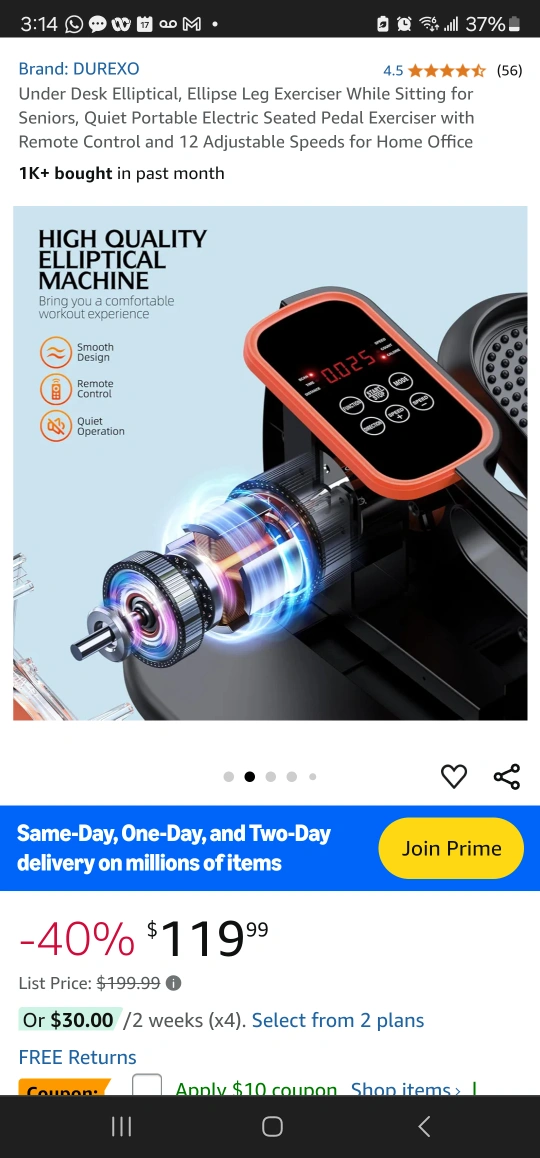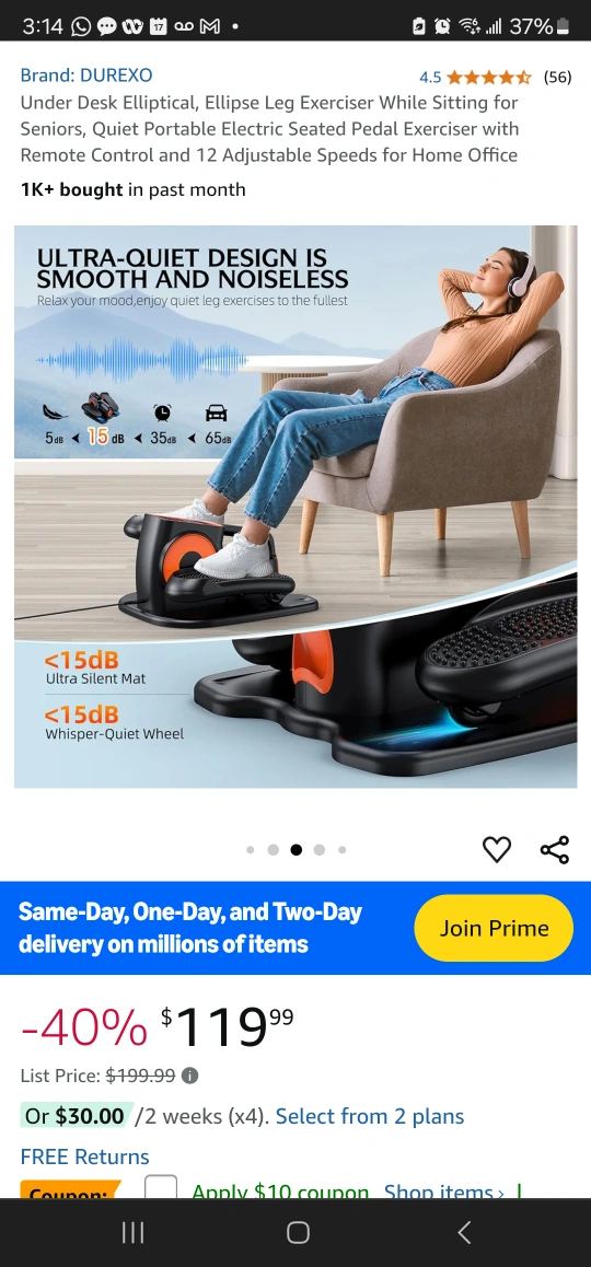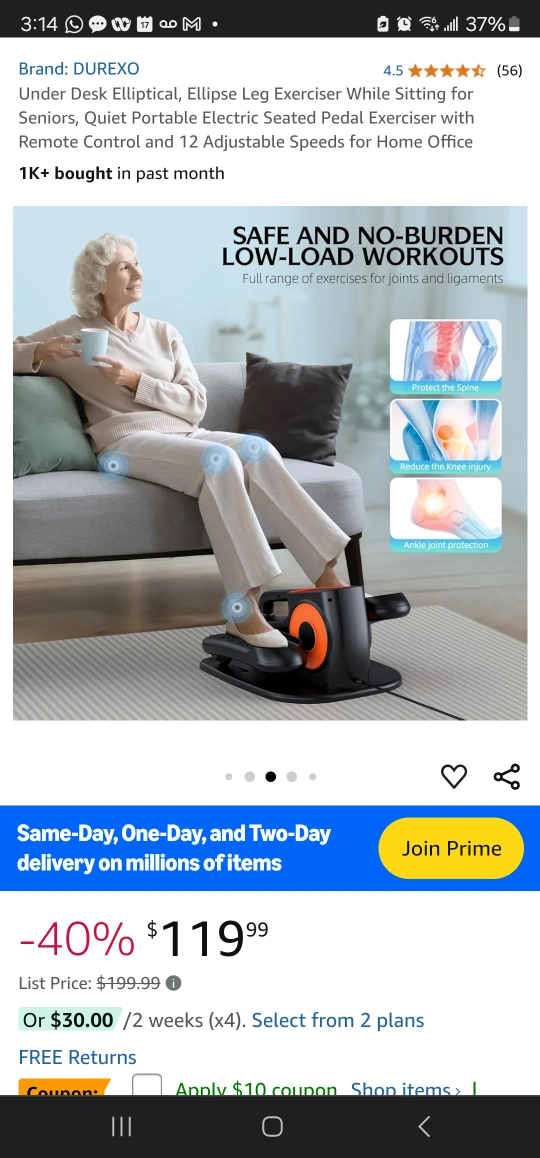 Electric seated pedal exerciser with remote control and 12 adjustable speeds for home office use. Quiet operation. LCD screen displays speed, time, distance and calories burned.