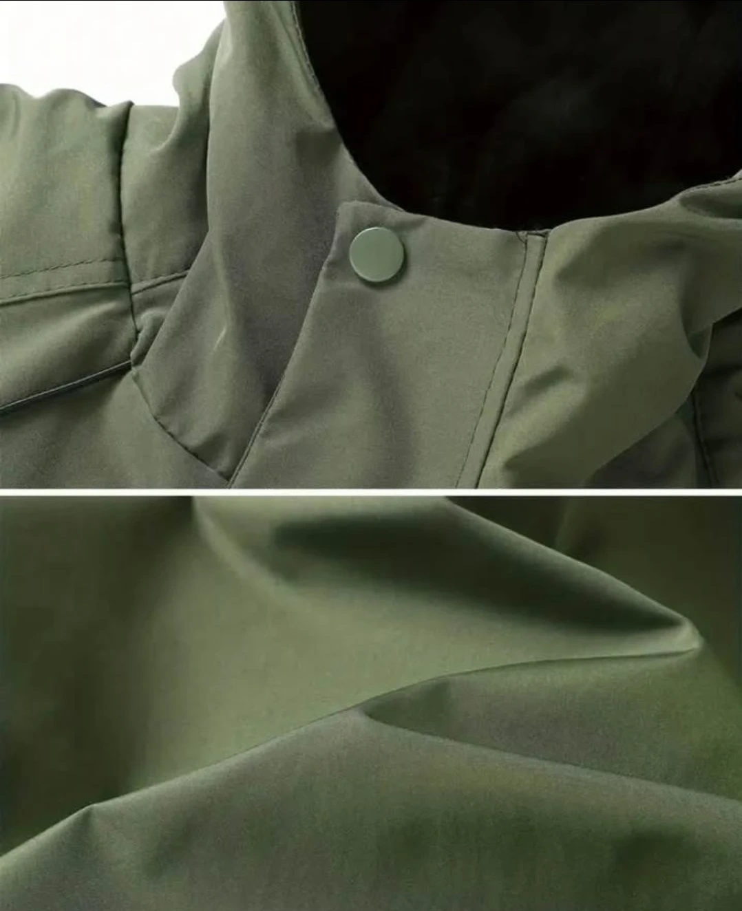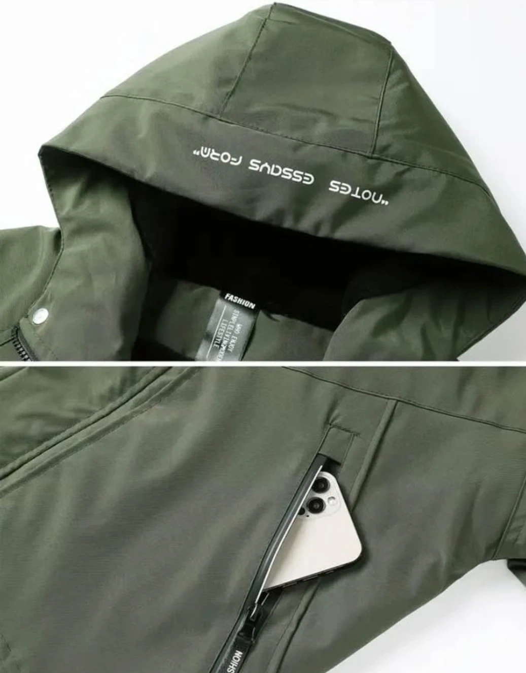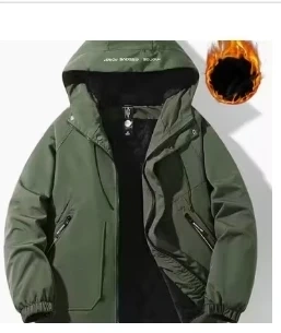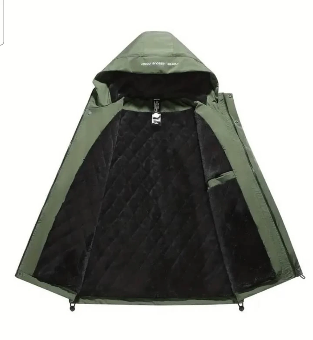 This men's hooded jacket is lined with soft, quilted fleece for extra warmth. It features zippered pockets for secure storage. The green outer shell looks sharp! It's a great jacket for cooler weather.
