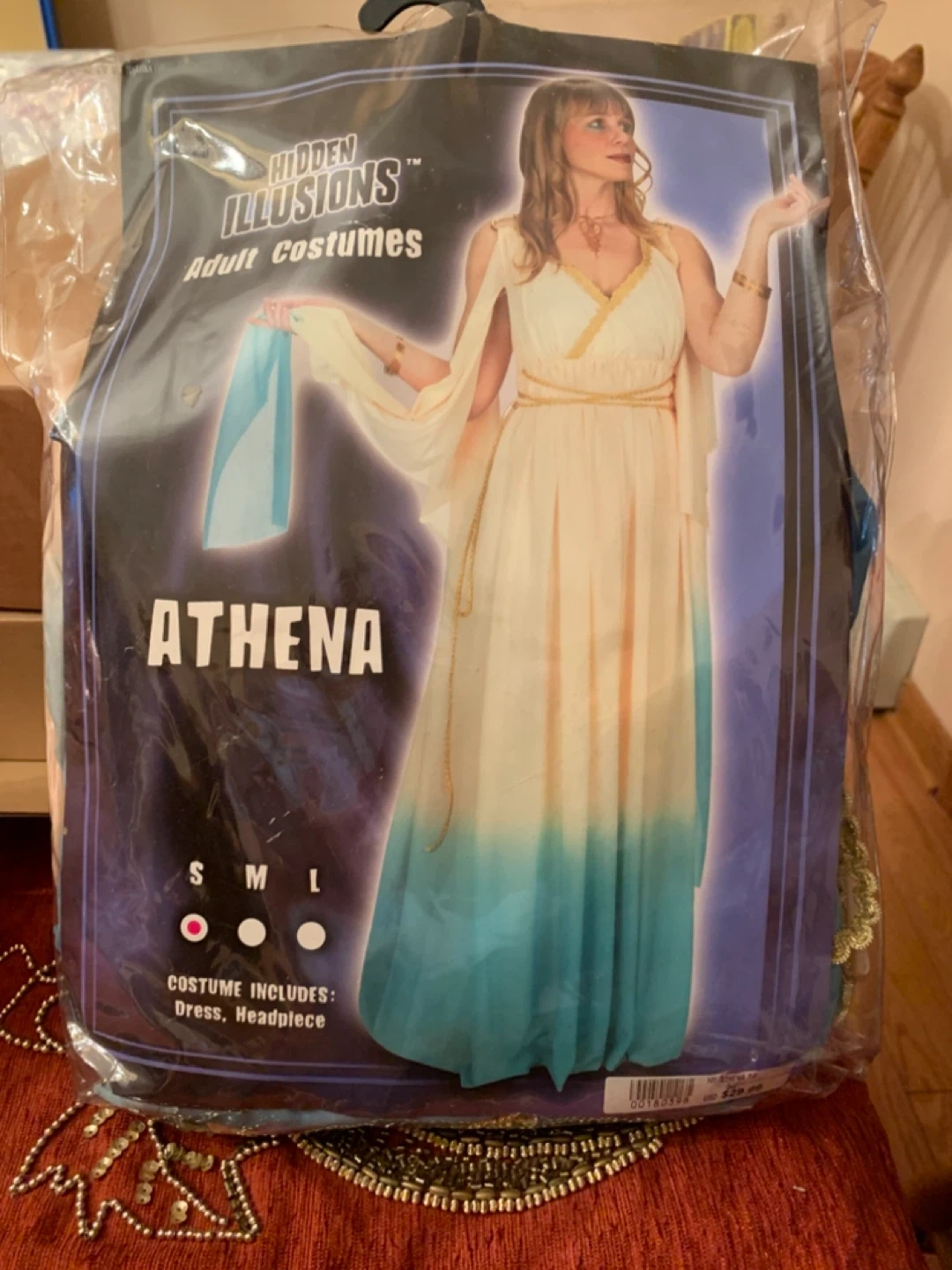 10Selling a Hidden Illusions Athena adult costume. The costume includes a dress and headpiece. It's a size small and looks great!