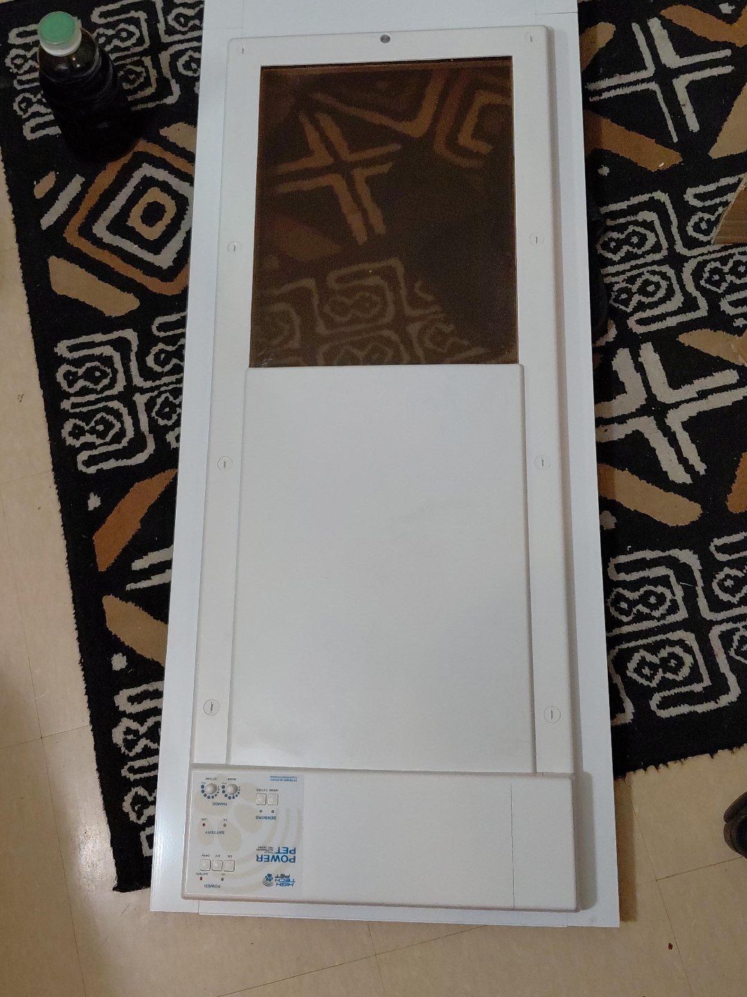 Selling a High Tech Pet Power Pet electronic pet door. It appears to be in good condition and is white in color. Perfect for keeping unwanted critters out!