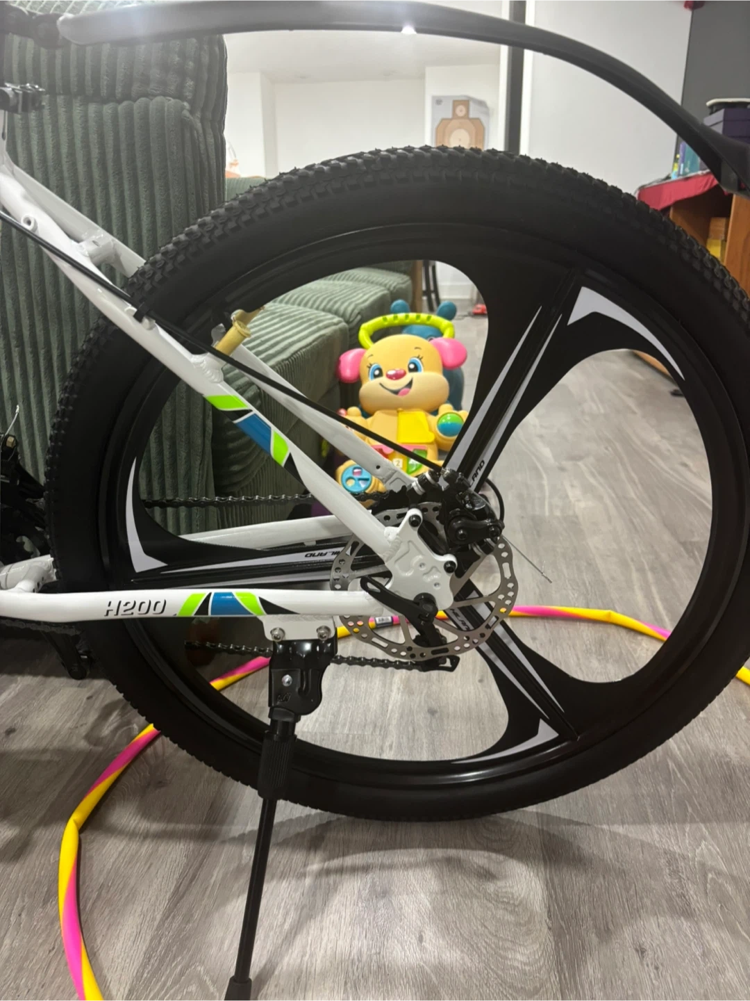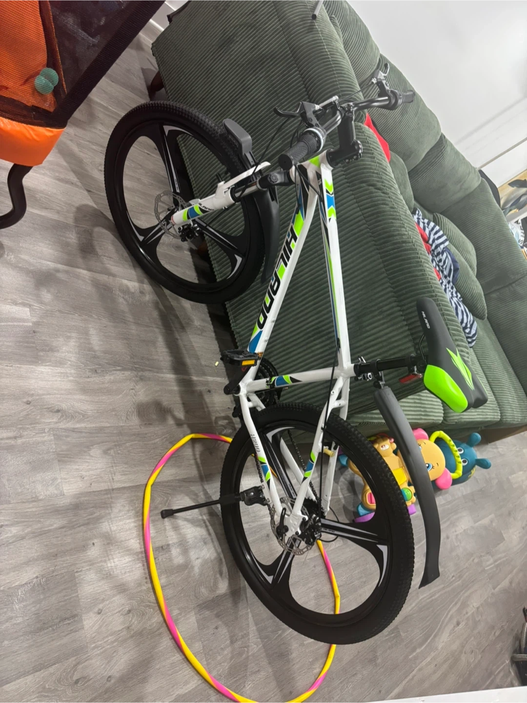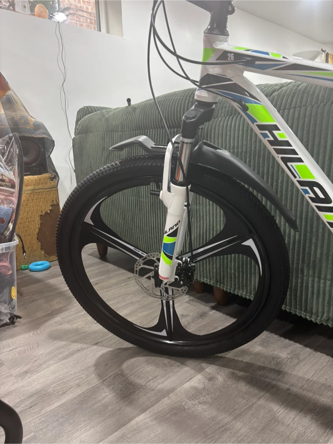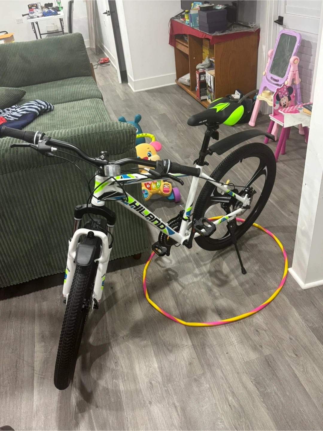 Selling a Hiland mountain bike in white and green! It's in excellent condition and ready for riding!