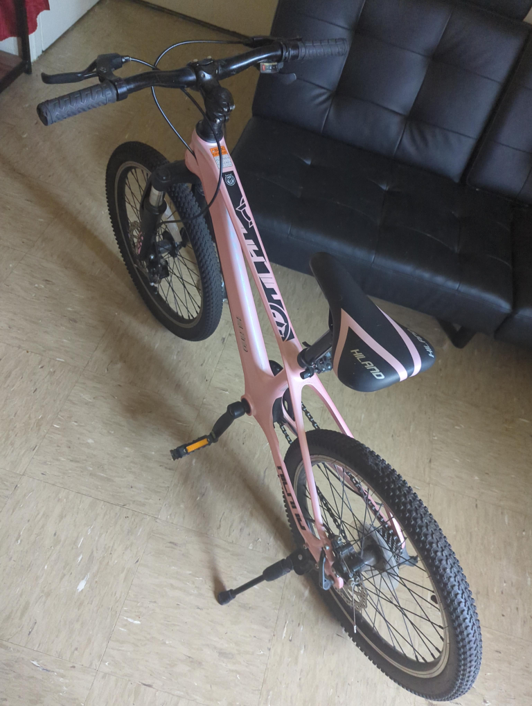 Selling a Hiland kids' mountain bike! It's pink and has 20-inch wheels. Great for hitting the trails or just riding around the neighborhood