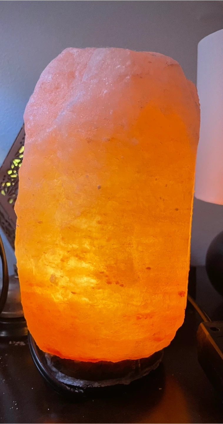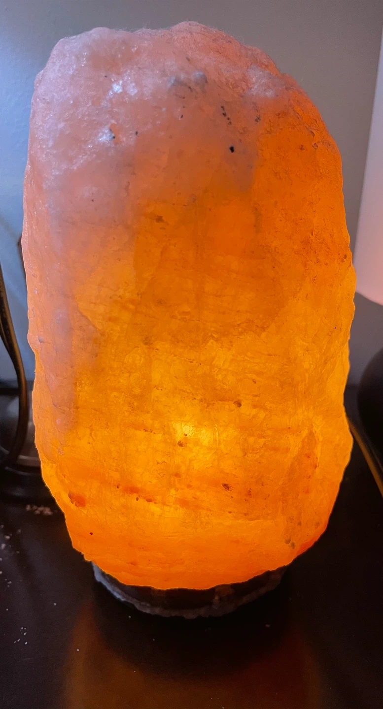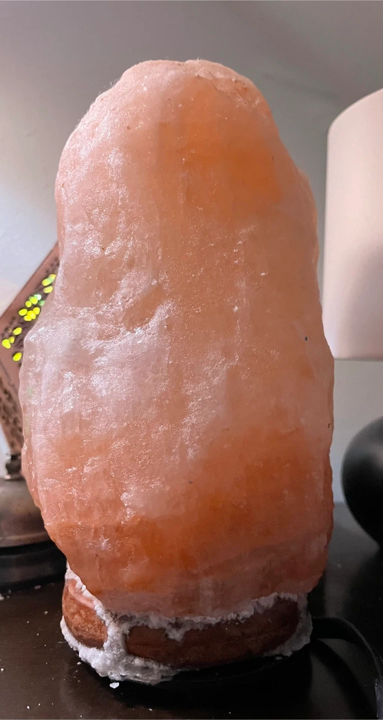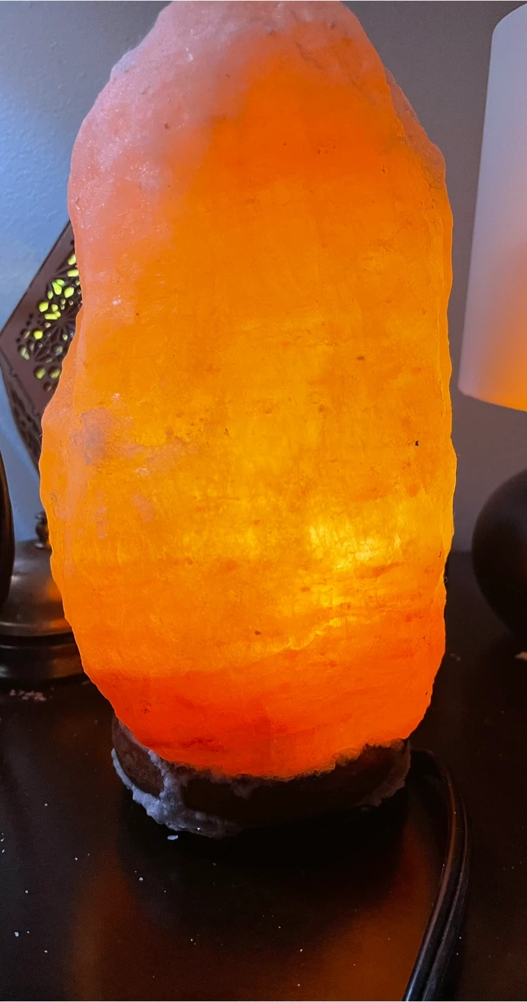 I'm selling a Himalayan salt lamp. It's in good condition it’s just beginning to crystallize due to me not having it on and it natural part of doing that. Also the knob is missing as shown in the picture, but you’re still able to move it. It provides a warm, ambient light. It's a great addition to any room!