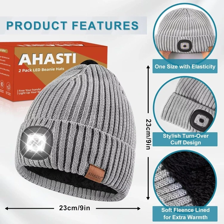 NEW 2pcs Pack Beanie with Light