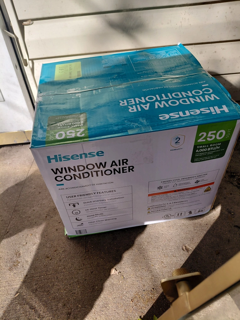Selling a Hisense 6000 BTU . window air conditioner for small rooms up to 250 sq ft. It features user-friendly features for quick and easy installation and a 24-hour timer. The unit also has sleep mode and a filter clean warning. It's designed to cool, dehumidify, and fan In Box sealed !