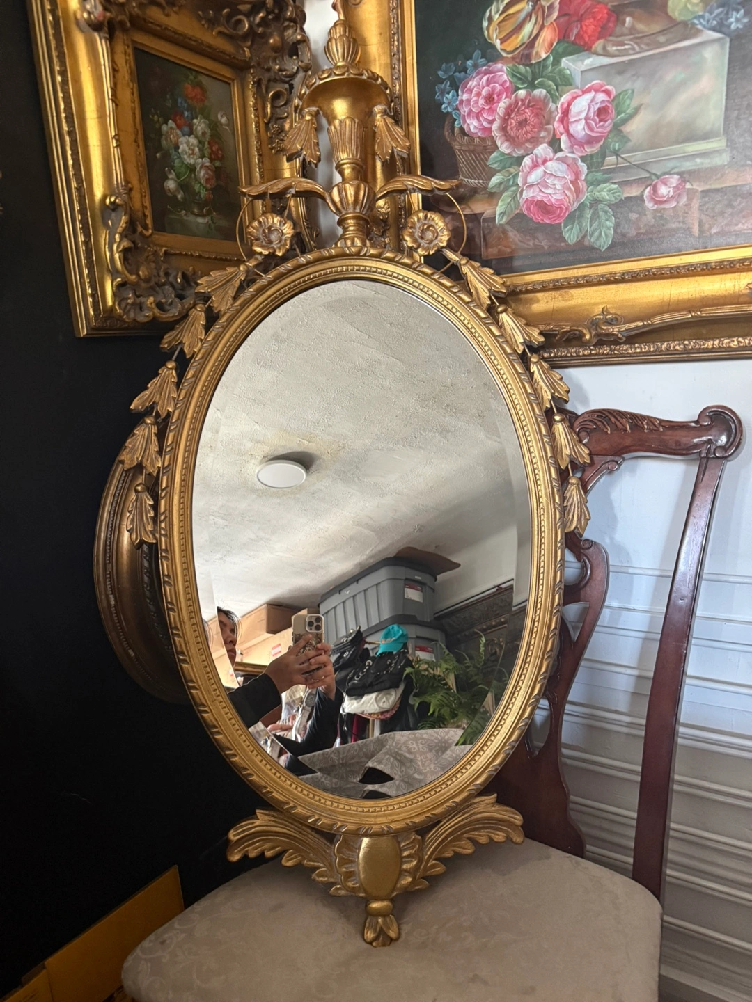 Selling a beautiful oval mirror from Hitchcock! The frame is a lovely gold color with ornate detailing. It's a great piece to add some elegance to any room In great condition Wood 50" x 24" Message me if you have any questions