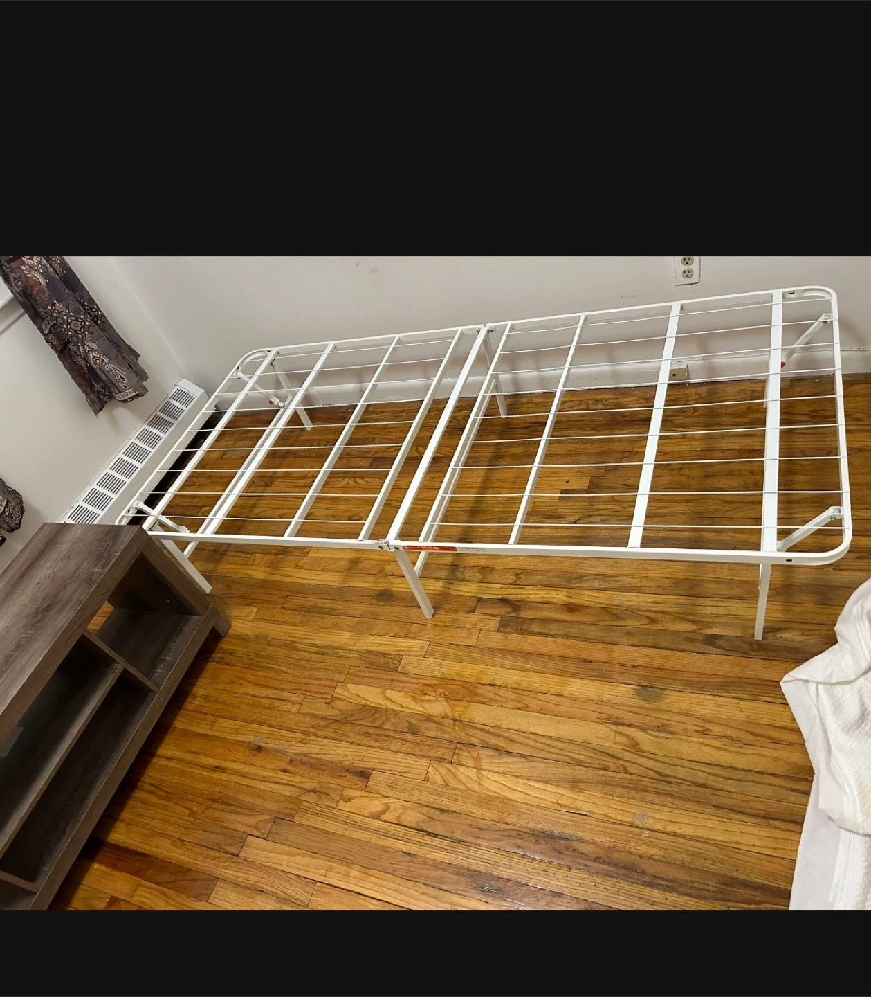 Selling a foldable bed frame in great condition! This white metal frame is super convenient for saving space, whether you need an extra bed for guests or just want to maximize room in a smaller apartment. It's lightweight and easy to set up and fold away when not in use. Perfect for anyone needing a practical and sturdy bed solution