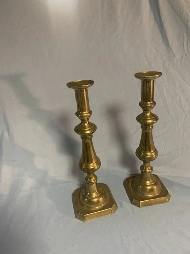 Vintage Solid Brass Push Up Taper Candlesticks (Set of 2, 14")