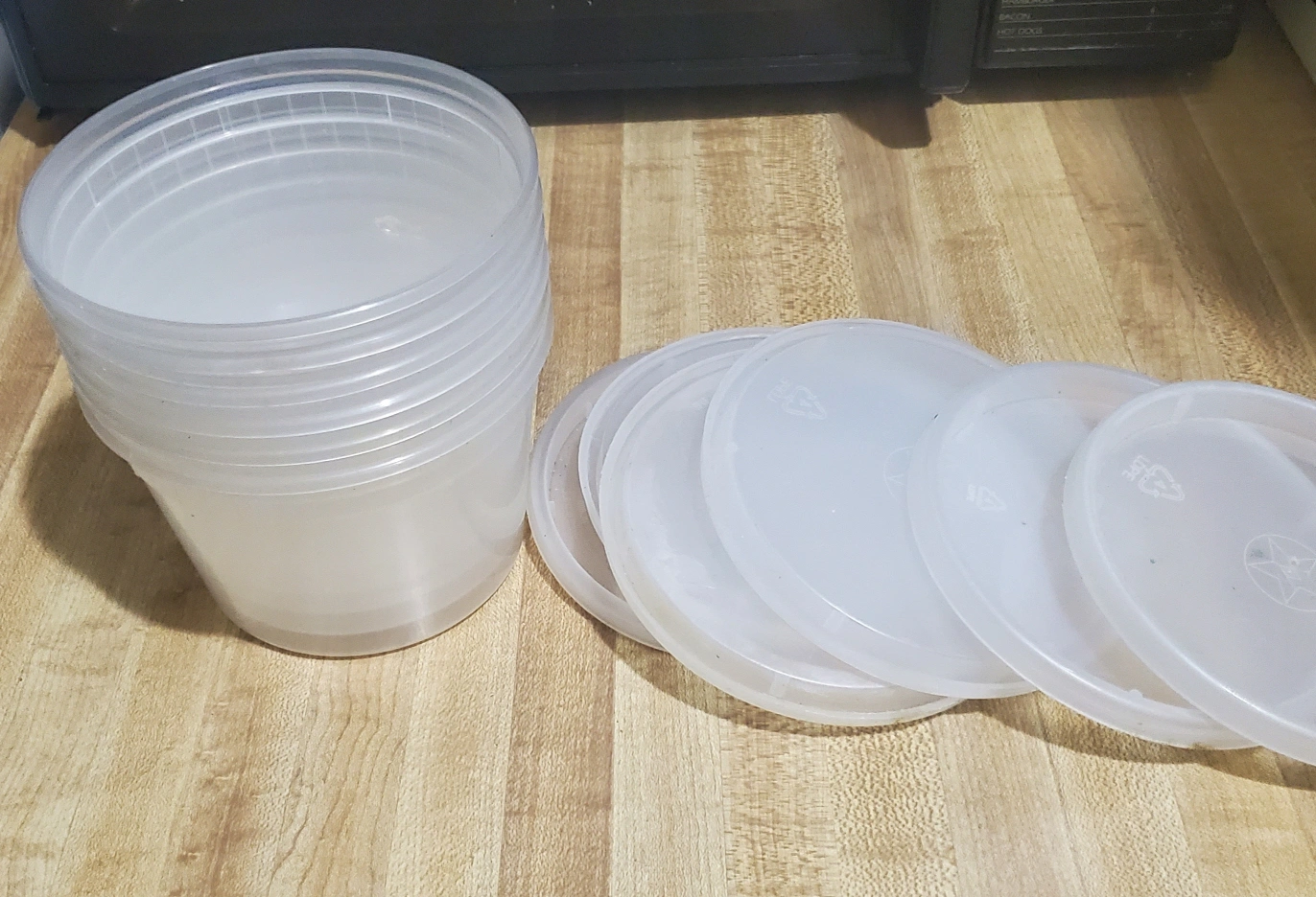 Giving a set of 6 plastic food storage containers with lids. They're great for meal prepping or storing leftovers. The containers are used but in good condition.