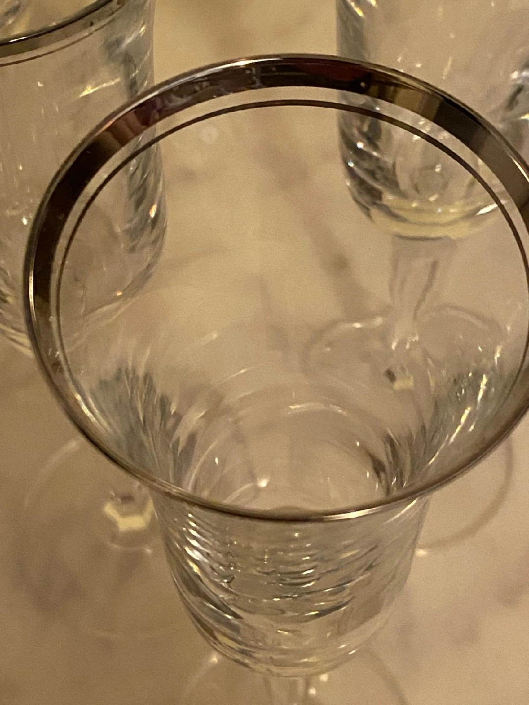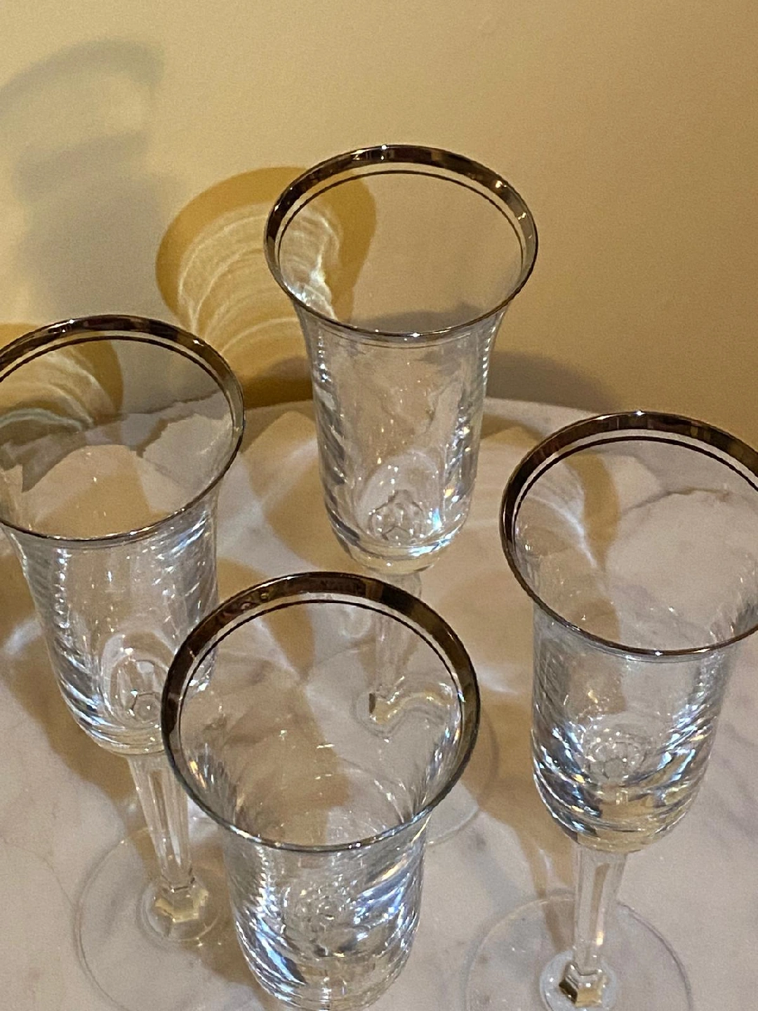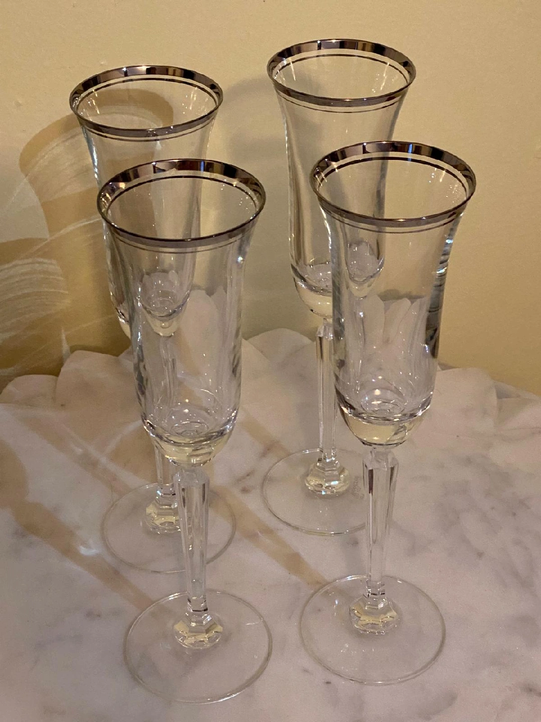 Selling a set of Briarcliffe champagne flutes. They are made of full lead crystal and have a silver rim. They have a lovely design and are in great condition!