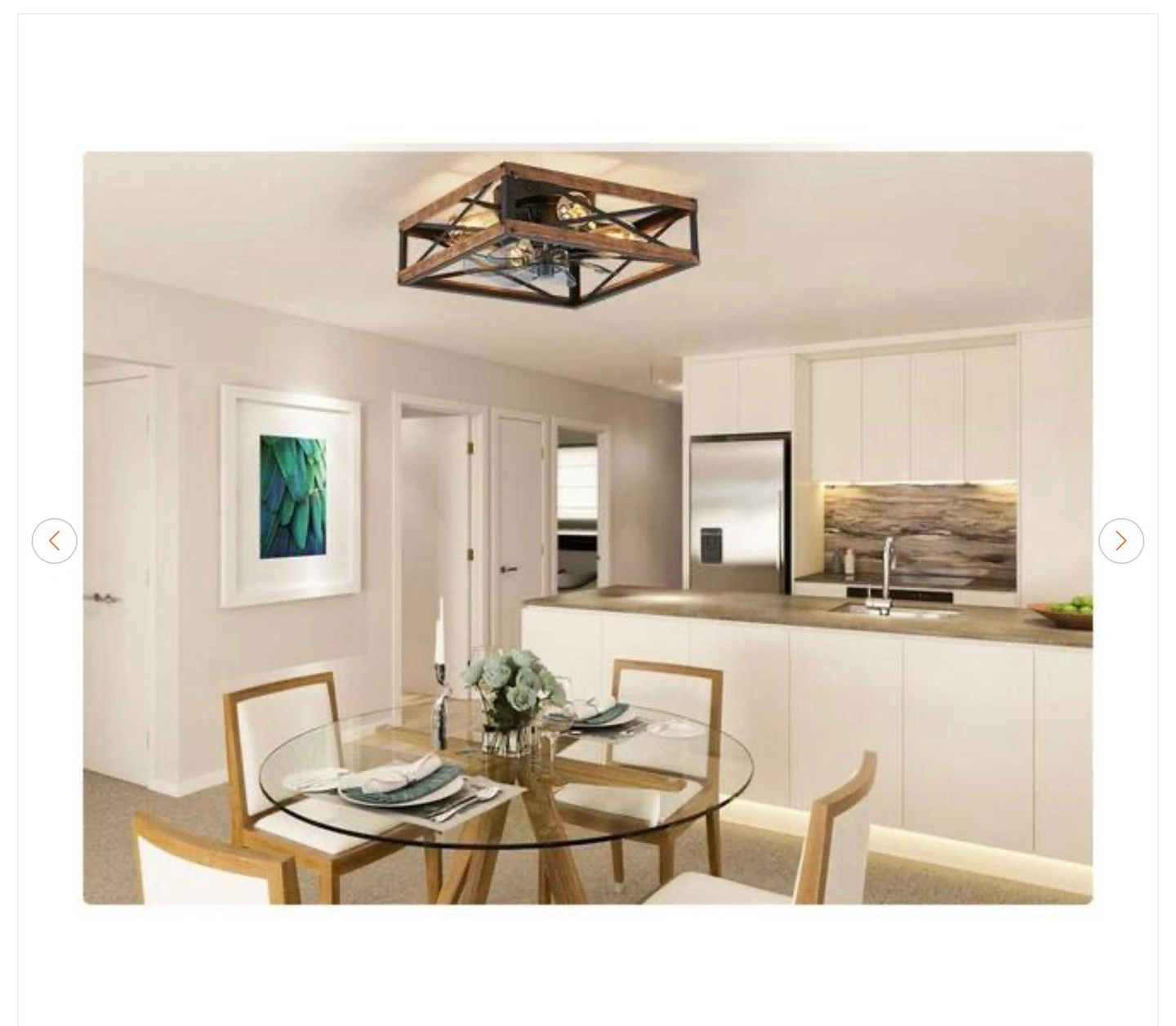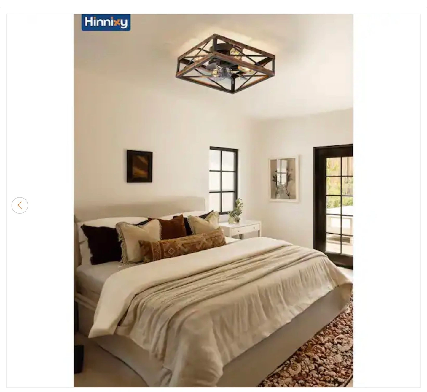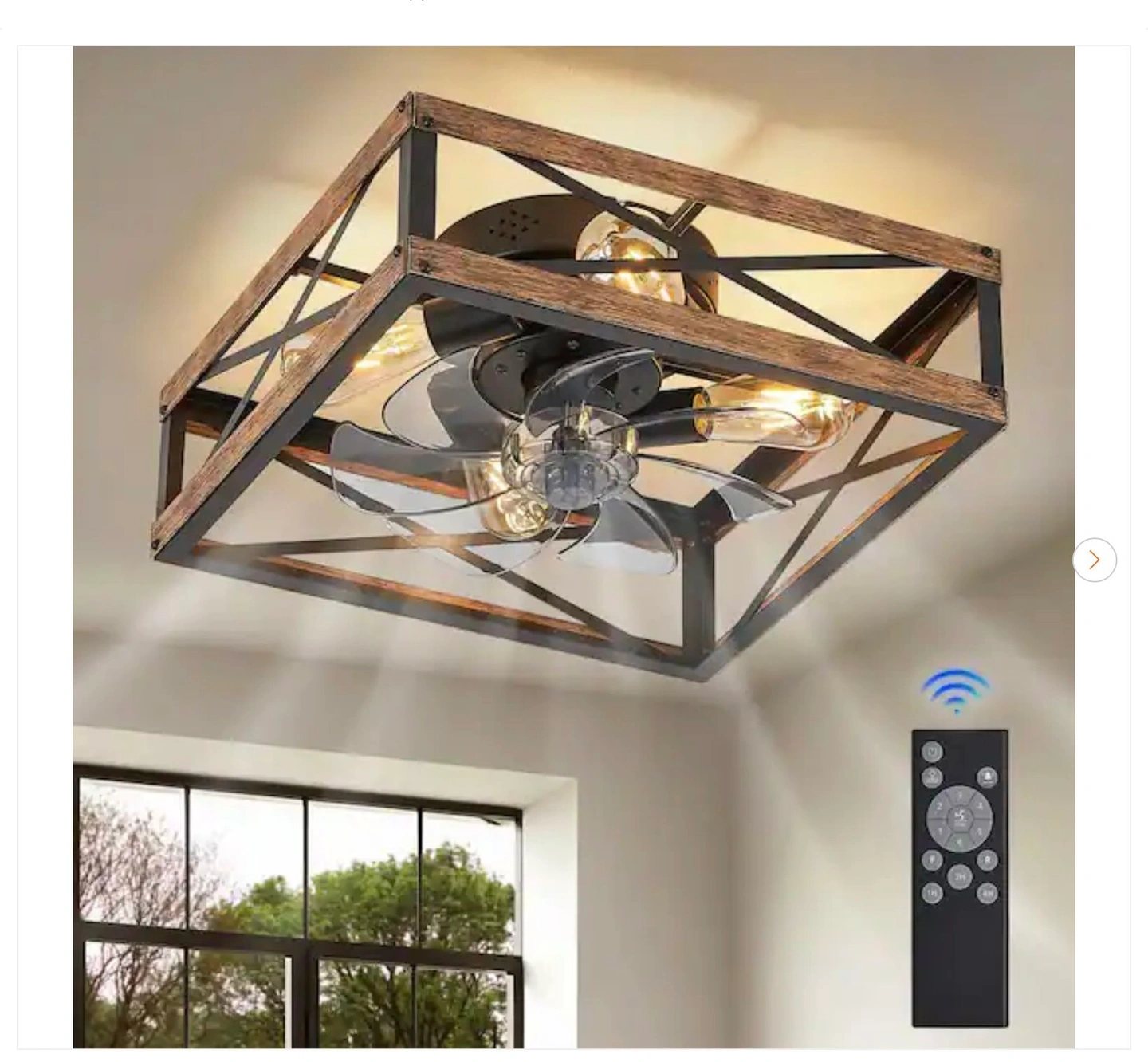 This is a new 16-inch indoor brown caged ceiling fan that comes with a remote control. Feel free to message me if you have any questions!